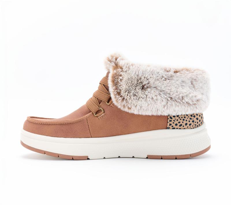 Bootie features a synthetic leather upper with faux fur lining, a__ leopard print Skechers Slip-ins molded heel panel, and a cushioned Skechers Memory Foam insole.Content:textile & man made upper,faux fur upper/lining, balance man made. Shaft height: 2 5/8". Opening Circumference:10 7/8".Sole thickness:1 1/2".True to size. Imported.