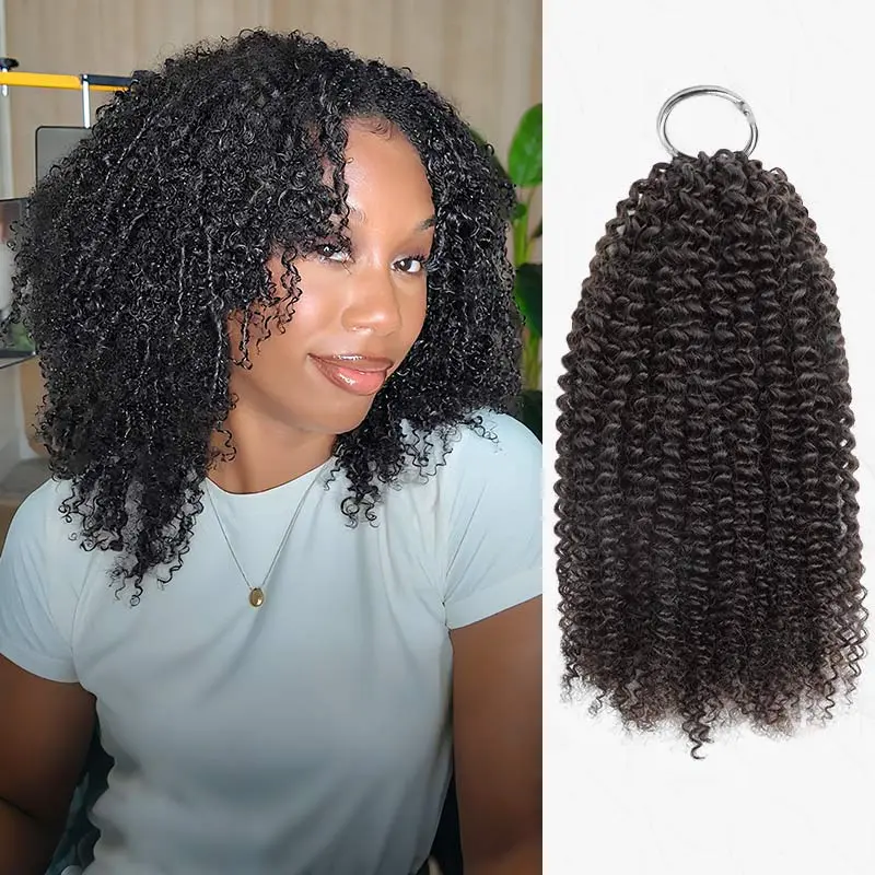 QVR #T1B/30 Crochet Hair Small Kinky Curly Machine Made Feather Human Hair Extension
