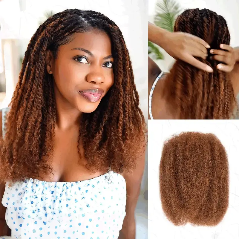 For a stylish update, choose QVR Mixed Color #4/30 Afro Kinky Bulk Highlights. Elevate your look with this human hair product today!
