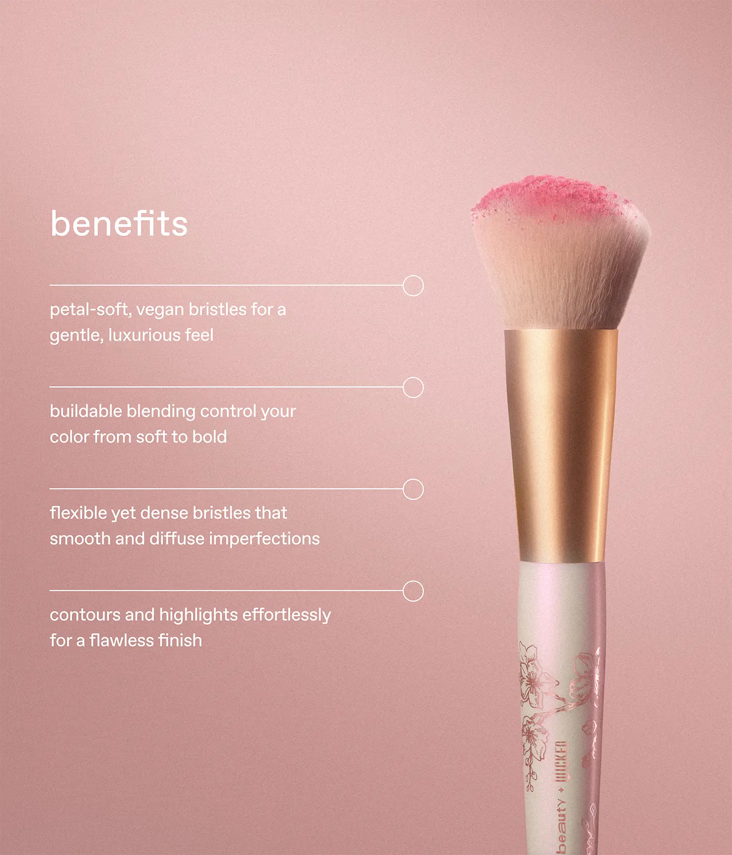 A limited edition r.e.m. beauty x Wicked: For Good blush brush inspired by glindaās cherry blossoms with petal soft bristles that blend and build to your desired level of color. Soft yet flexible vegan bristles are dense enough to diffuse imperfections, glide around contours & highlight your best features.