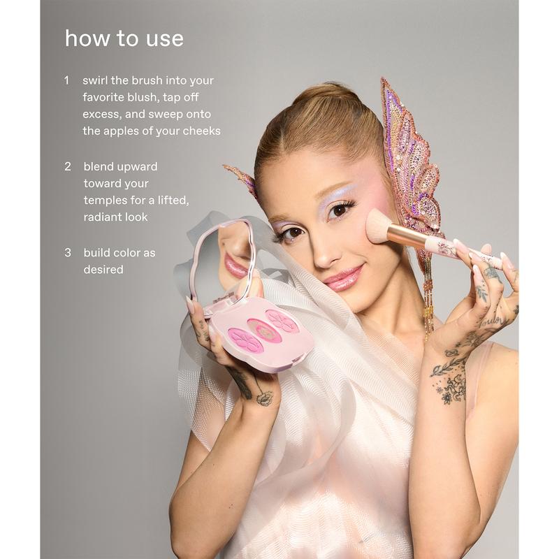 a limited edition r.e.m. beauty x Wicked: For Good blush brush inspired by glinda’s cherry blossoms with petal soft bristles that blend and build to your desired level of color. soft yet flexible vegan bristles are dense enough to diffuse imperfections, glide around contours & highlight your best features.