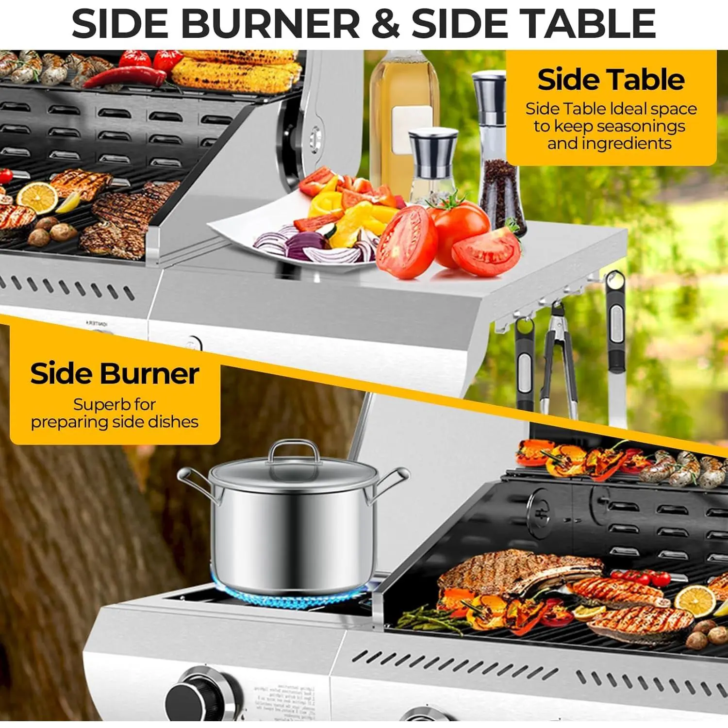 ·Durable Stainless Steel Build: Constructed with high-quality stainless steel, this outdoor grill is built for long-lasting strength and weather resistance. The upgraded porcelain-enameled cast iron cooking grates offer exceptional durability, a naturally non-stick surface, and resistance to rust and cracking—making this gas grill a reliable choice year-round