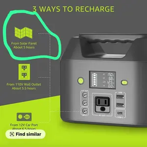 ·4 Recharging Ways For Power Bank: This 150 watt portable power station can be recharged via wall outlet, 12v car socket, 13-23v OCV solar panel (not included), gas generator. The built-in LED light features three modes, light, strobe, and SOS, very useful and handy for the camping night, blackout and emergency.