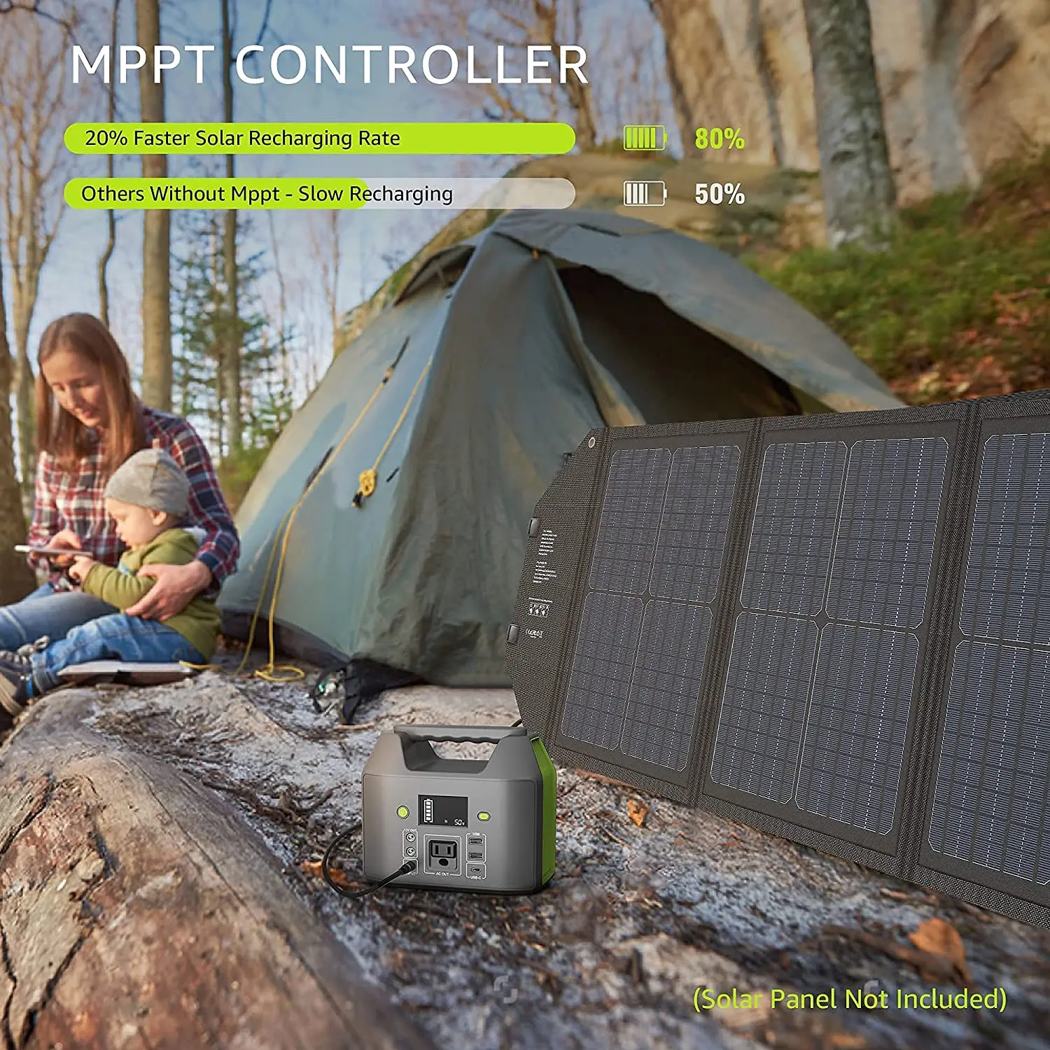 ·150W Solar Generator: portable power station, equipped with a 155Wh lithium-ion battery pack, no fuel or gasoline needed, no pungent odors, much quieter than gas powered generators! Only 4 lbs, easy to carry for your next camp trip or hiking