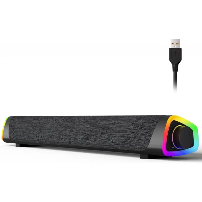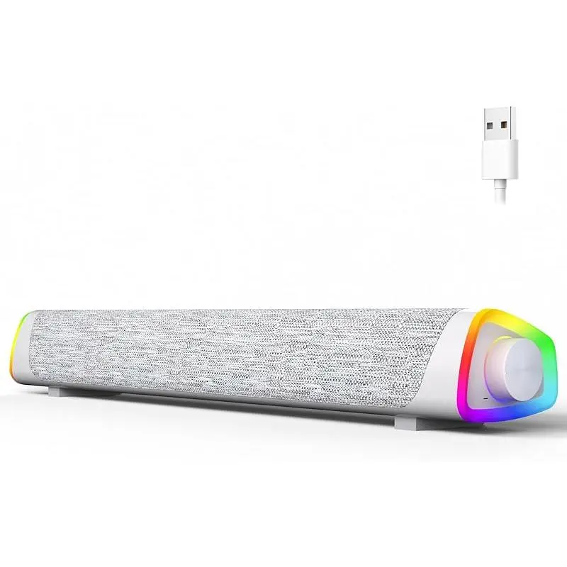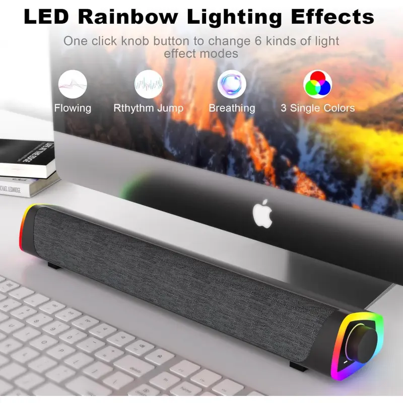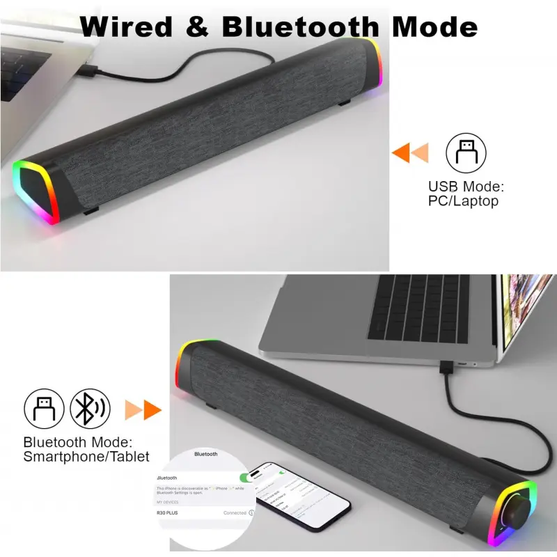R30 Plus Bluetooth Computer Speakers for PC Desktop, All-in-one Control Button with 6 Modes LED Lights, Wired USB Powered Sound Bar, Surround Sound Portable SoundBar for Monitor Laptop Phone