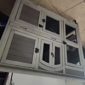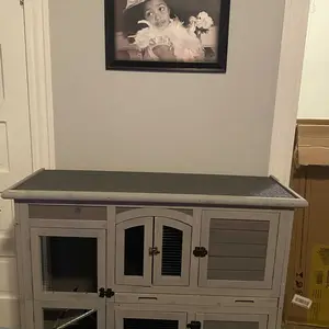 Disappointed! I was sent “new” product that was chipped and cracked! The quality of this “wood” is very cheap! Had I not just got 2 bunnies, I would’ve sent this back, but I needed the cage! The one set of doors doesn’t align correctly. You can kind of tell in the picture! Bunnies like the space tho