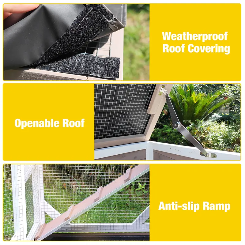 ·Wire Mesh Roof with Waterproof Tarp: The durable wire mesh ensures excellent ventilation and security, while the waterproof tarp protects against rain and harsh weather conditions.