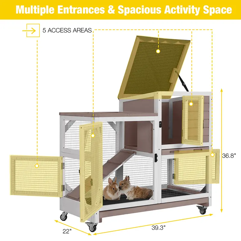 ·2-Story Spacious Design: Offers ample space for your rabbits, guinea pigs, or other small animals to play, relax, and rest comfortably.
