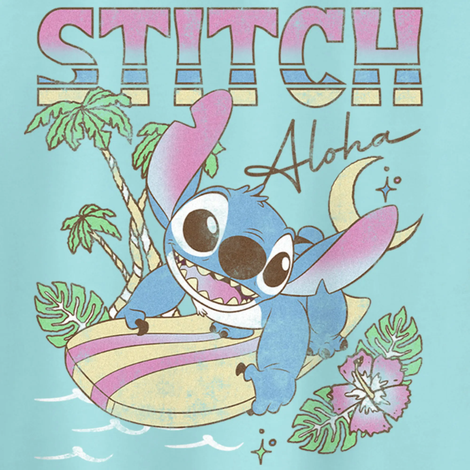 Ohana means family, and that means no tank gets left behind! Find the perfect style with this officially licensed Disney Lilo & Stitch Juniors' Surfing Stitch Graphic Racerback Tank Top! This design features a cool graphic of Stitch dominating the waves with palm trees, flowers, and the moon in the background along with the phrase "Aloha" printed above. Celebrate a certain alien, otherwise known as Experiment 626 this year with new hilarious apparel from the movie!
