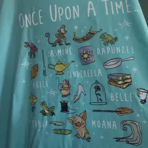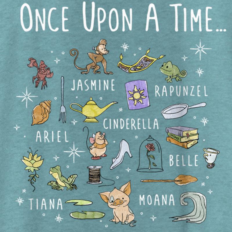 If you can't decide which of the Disney characters is your favorite… now you don't have to! Celebrate all of your favorites with this officially licensed Disney Once Upon a Time Icons Women's Graphic Racerback Tank Top! This cute tank features cute doodles of Abu, Chip Potts, Gus, Pascal, Prince Naveen, Pua, Sebastian, along with iconic items like the magic carpet, glass slippers, books, and the names of your favorite princesses, including Jasmine, Rapunzel, Ariel, Cinderella, Belle, Tiana, and Moana, printed across the front. Dress in style this season with this new fun apparel today that is perfect for Disney fans everywhere!