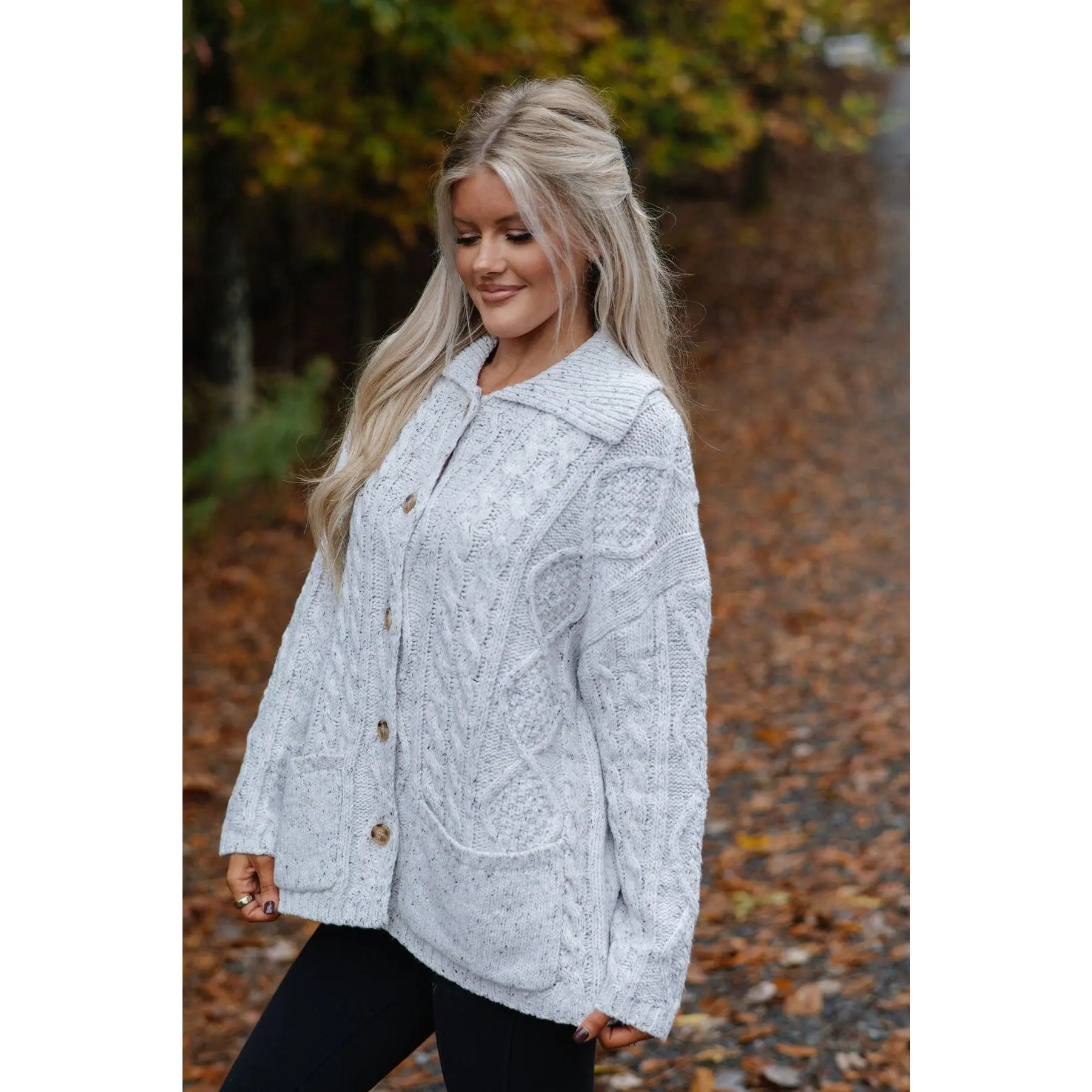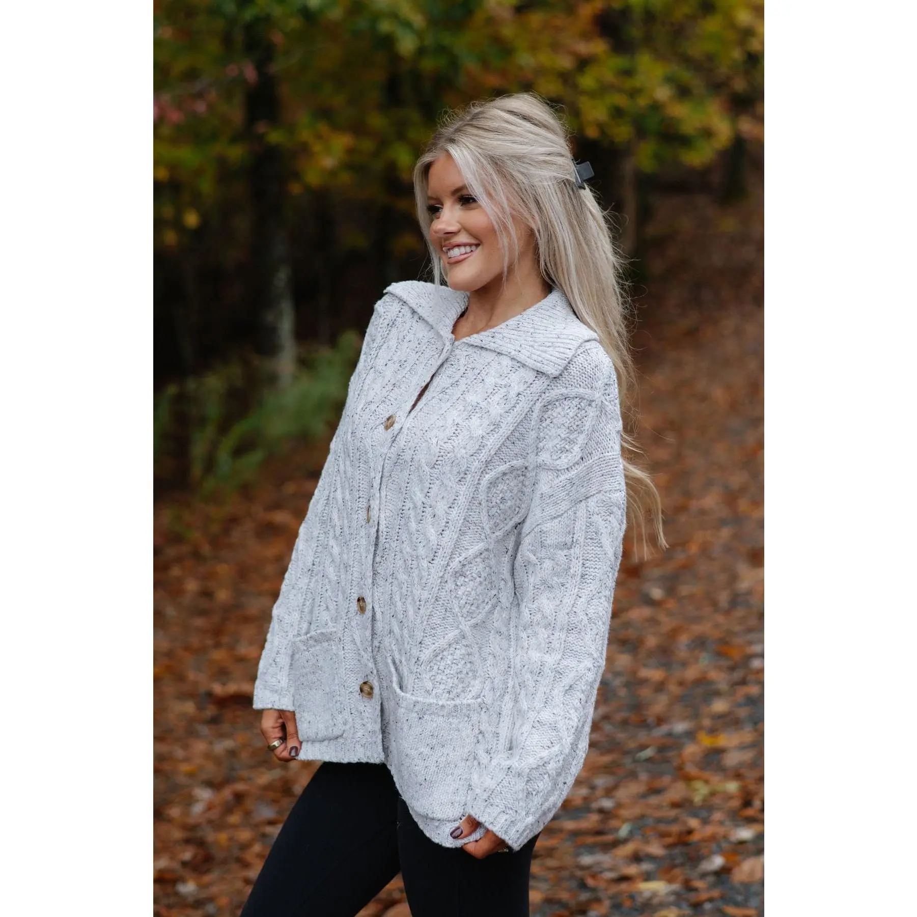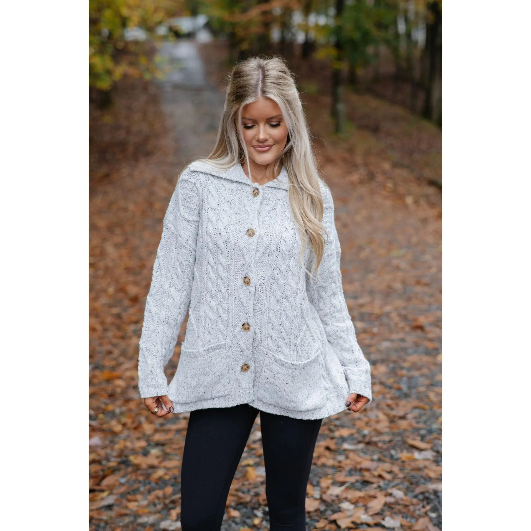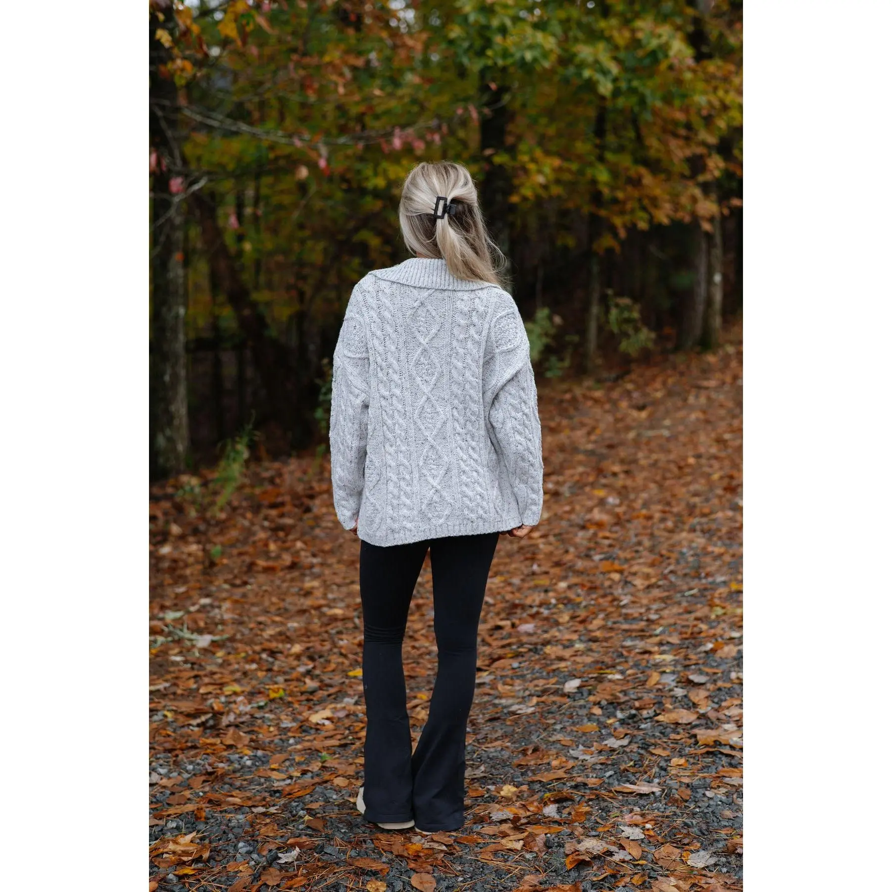 ·Heather grey cable knit cardigan sweater