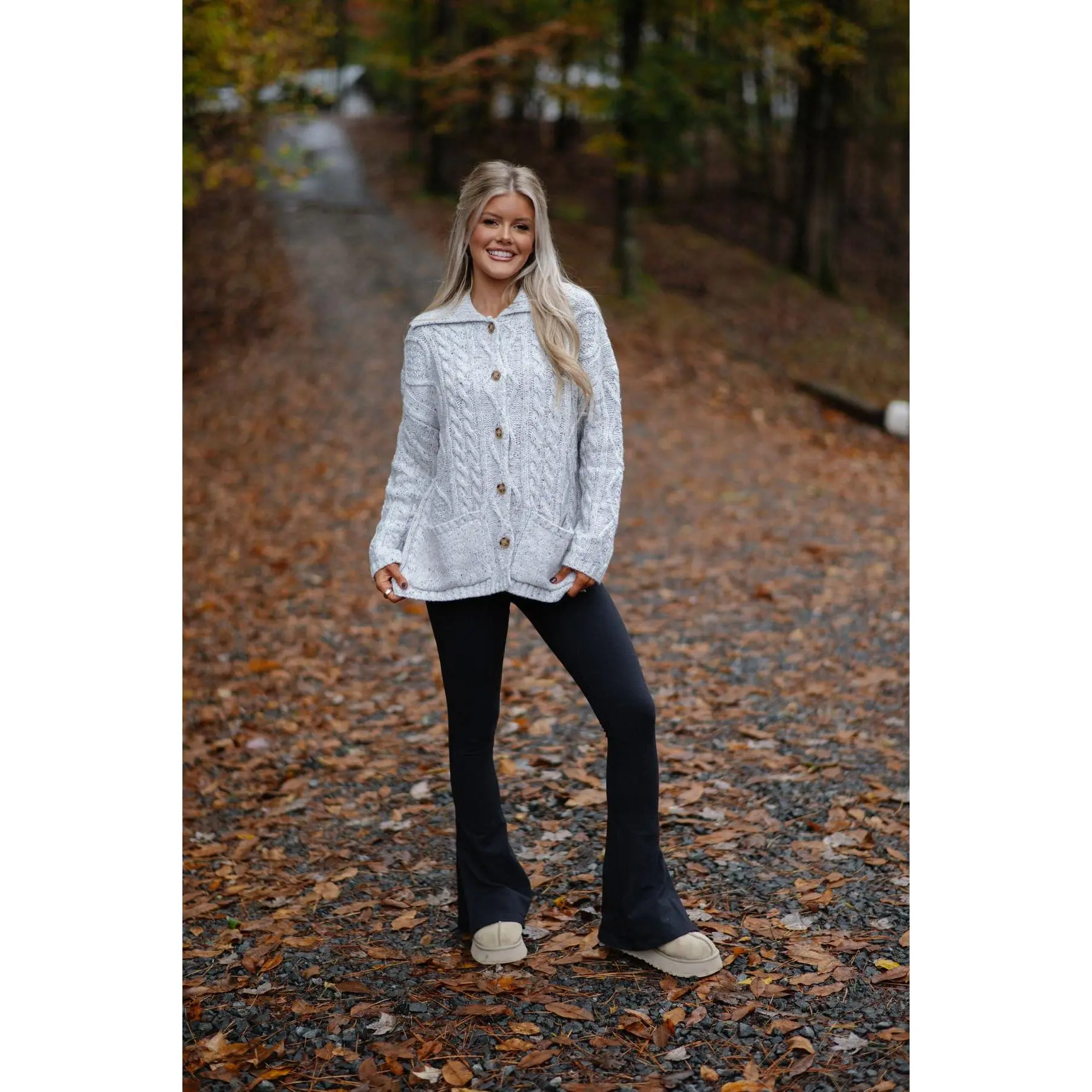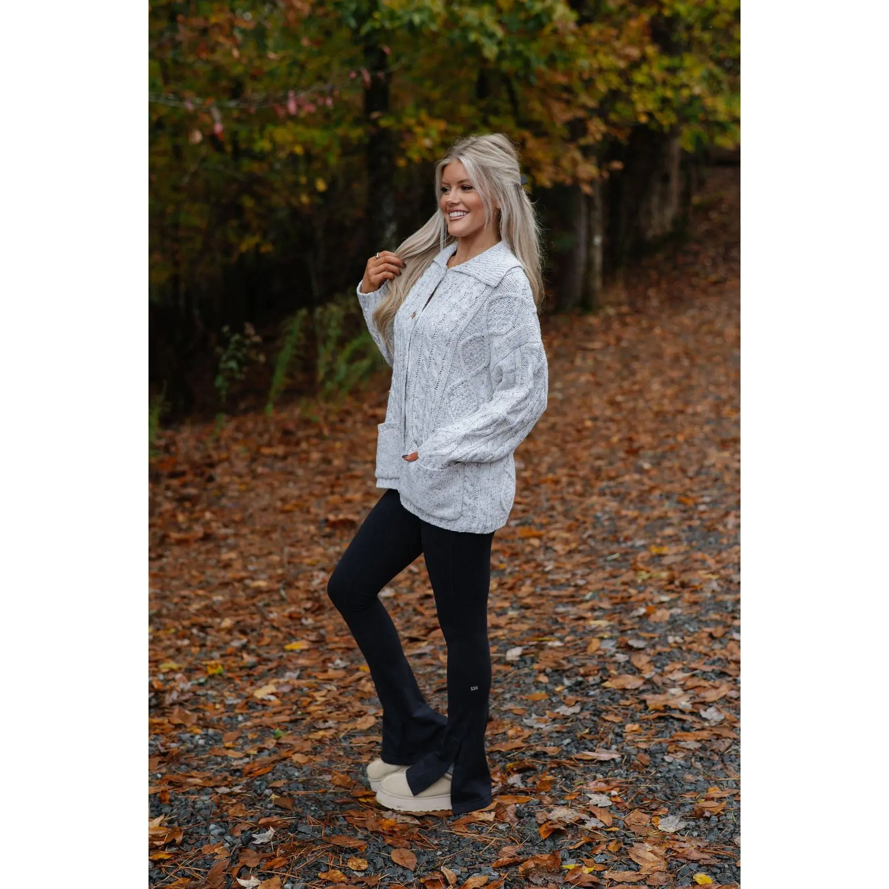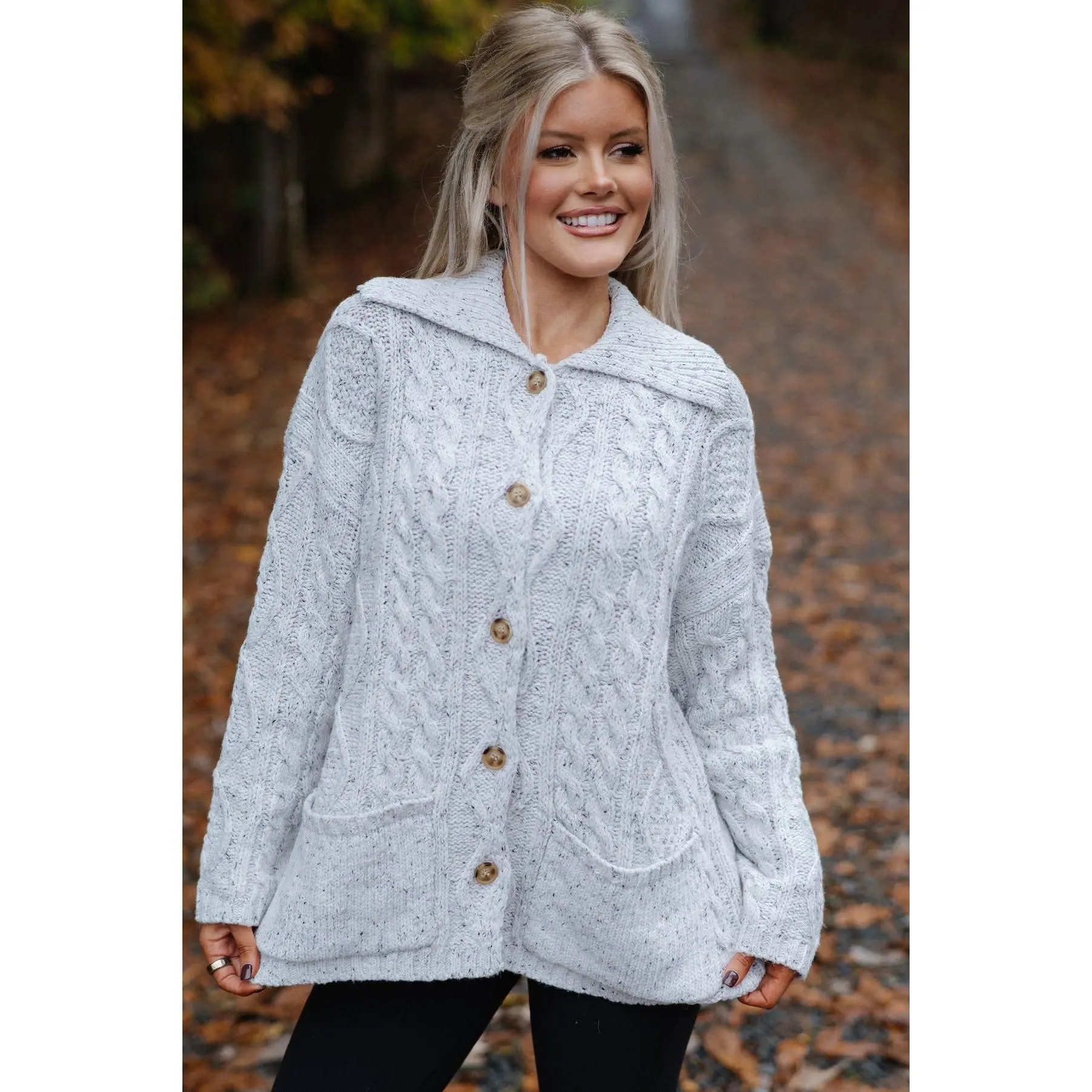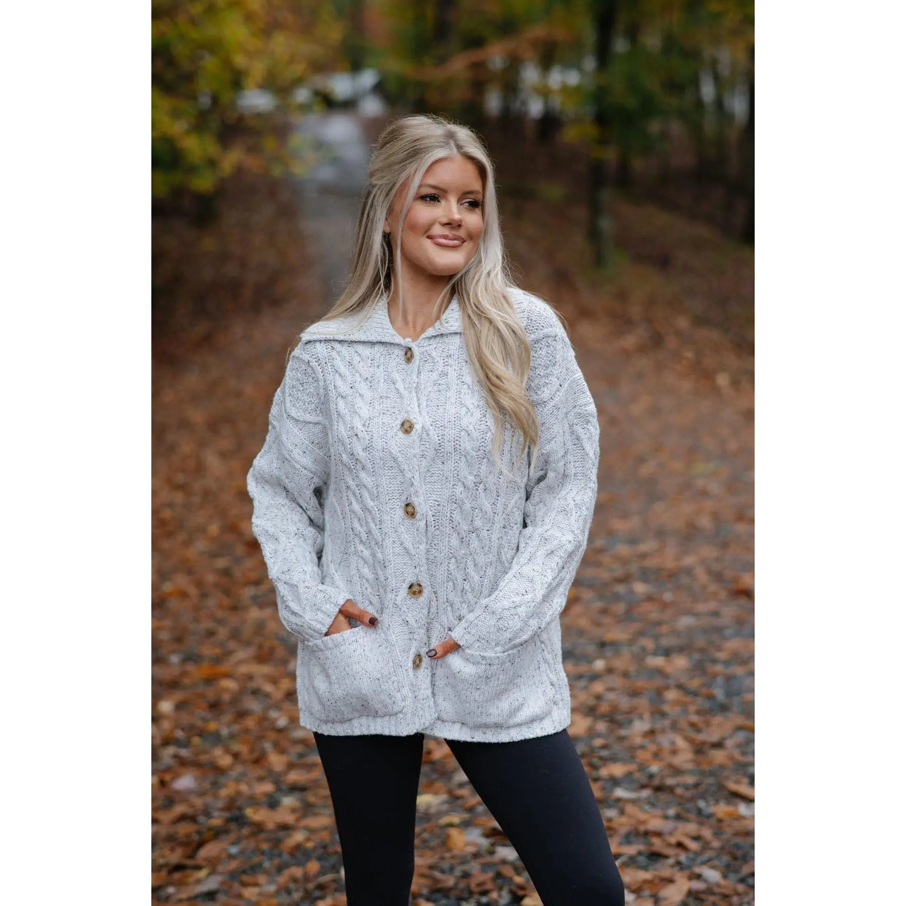 ·Heather grey cable knit cardigan sweater