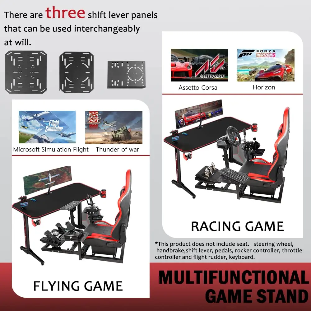 【Professional Racing Stand】Allows racing simulation games! Equipped with handbrake plate for mounting steering wheel, handbrake, pedals. Fit for Logitech G29, G920, G923, Thrustmaster T80, T300RS GT, Fanatec.