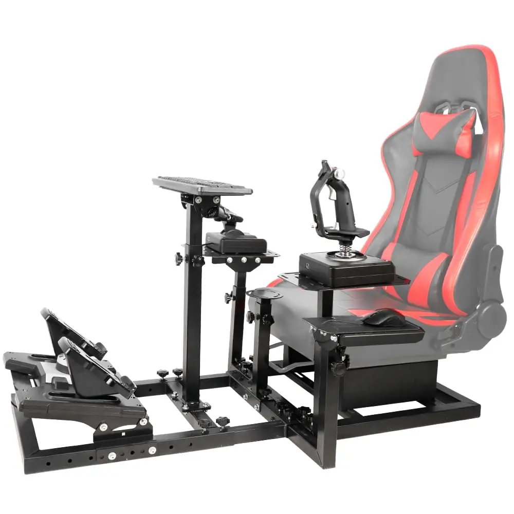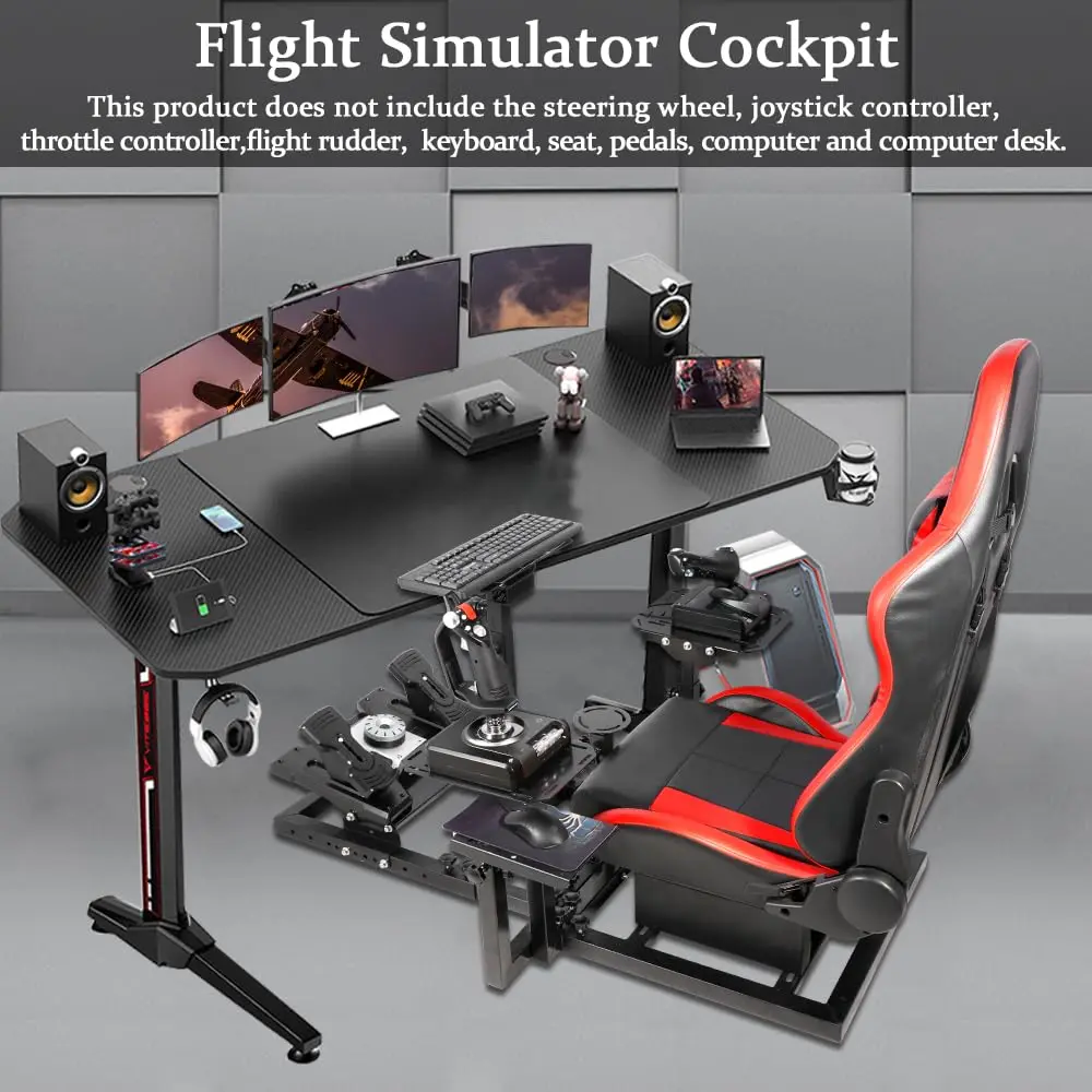 【Professional Flight Stand】Allows for fighter, civil airplane games! Equipped with 4 panels to mount joysticks, rudders, flight pedals. Fit for Logitech X52 PRO, Thrustmaster HOTAS Warthog, etc.