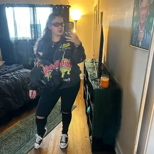 Loveeeee this hoodie. I wish it was just a little longer but the print is so cool & it’s a comfy material. Also— it is not black it’s a washed gray color, that’s the only reason I took one star.