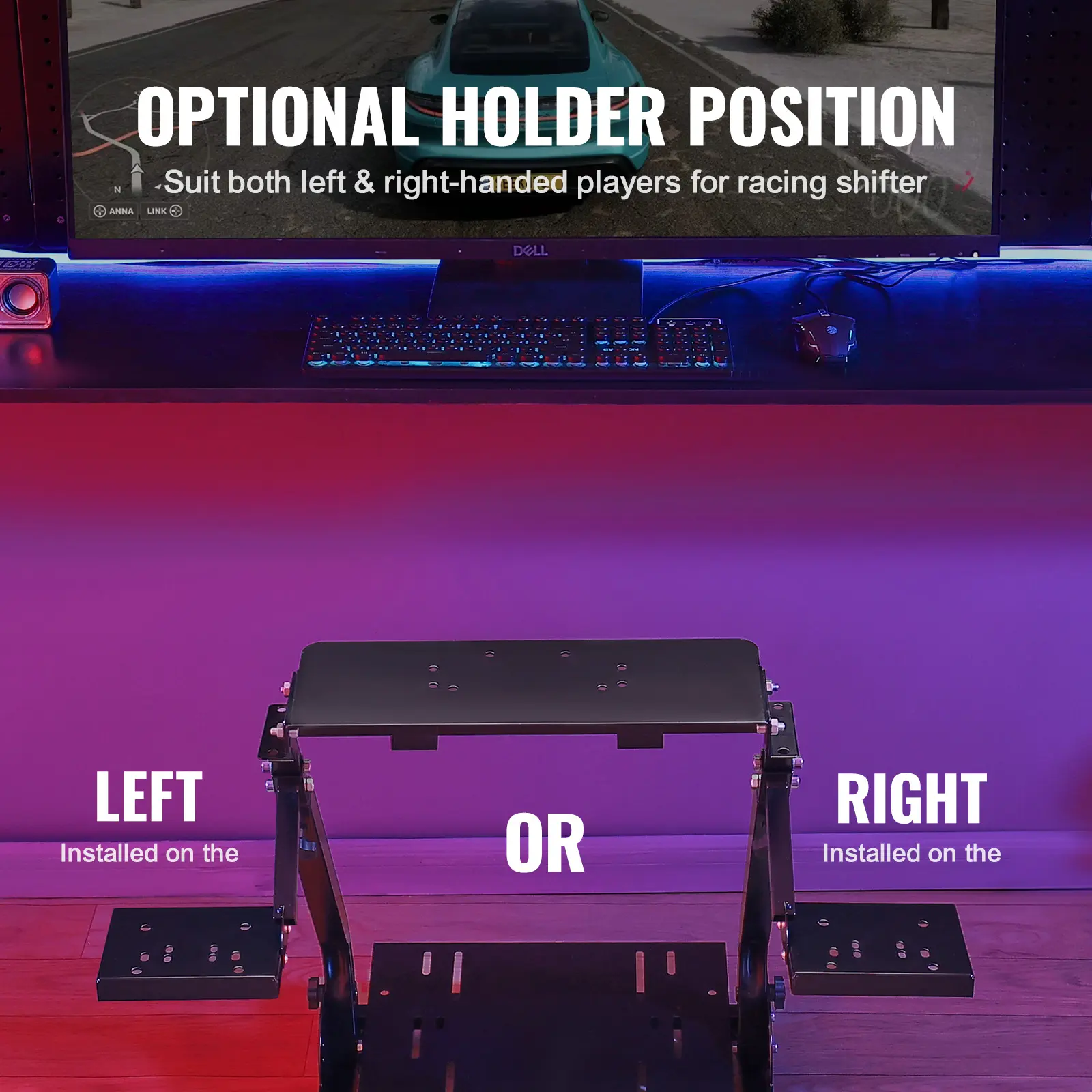 • Optional Holder Position: Our gaming wheel stand is completed with a gear shifter holder, which can be switched to the left or right side as you like. The optional position is entirely suitable for both left-handed and right-handed players. Moreover, pre-drilled holes provide great help to mount the gear shift.