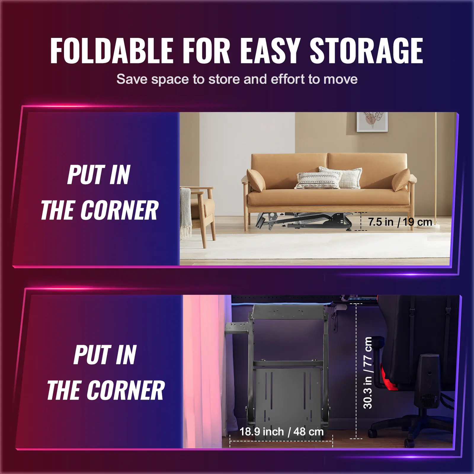 • Foldable & Compact: After enjoying the game, you can easily fold this racing wheel stand and store it under your couch/bed or in the corner, making it a perfect choice for players with limited storage space. The compact design allows you to carry it anywhere to keep your gaming enthusiasm with you.
