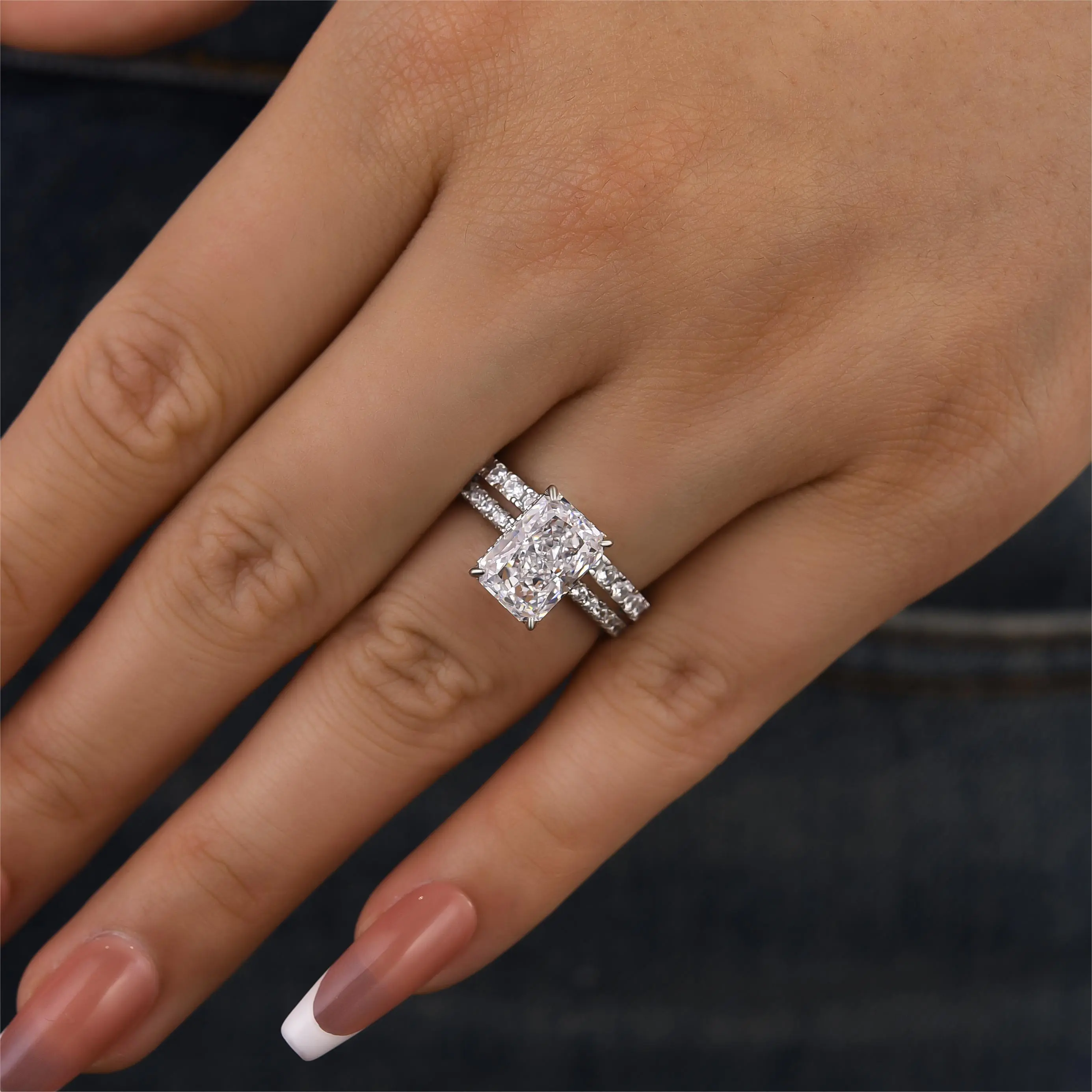 Effinny Radiant Cut Wedding Ring Set #effinnyring #tiktokfashion #jewelry #gift #fyp #sliverring #summersale #love #radiantcut #ringset