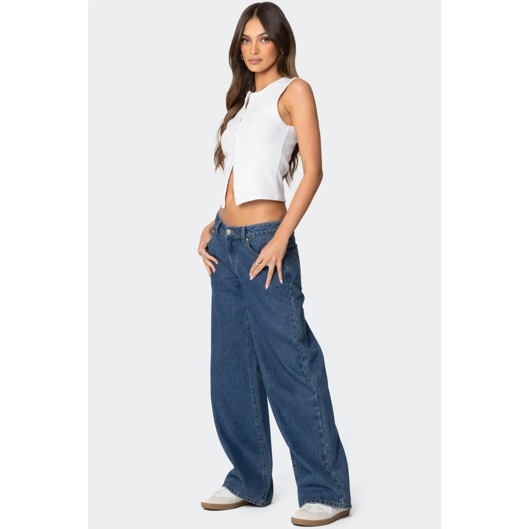 Did not fit like any of the reviews said they would. Butt crack shows every chance it gets in these jeans. I have no hips and low rise do not look good on me so Idek why I got these lol. Butt looks awful. I could fit my whole hand in my jeans. I’m 5’4 and 110 pounds get XS.