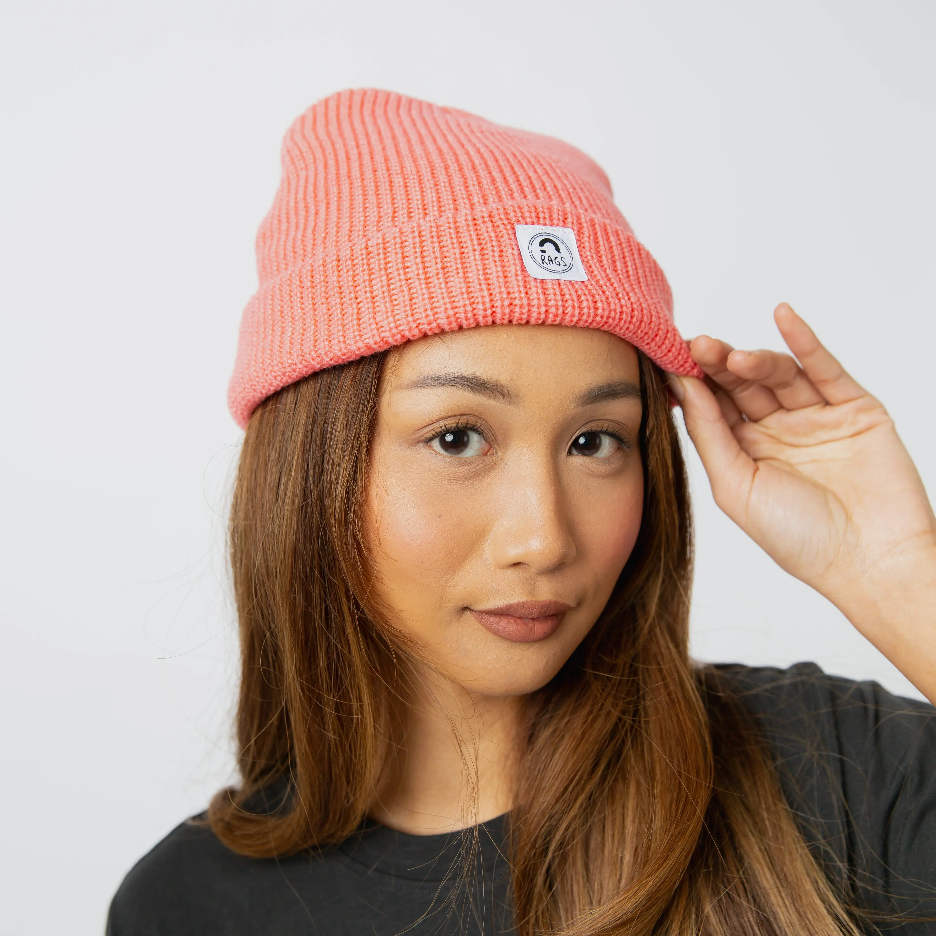 Keep warm and have some fun with the Rags Beanie - Coral! Perfect for adults and kids of all sizes, this beanie will give your winter outfit a playful POP! One size fits all.