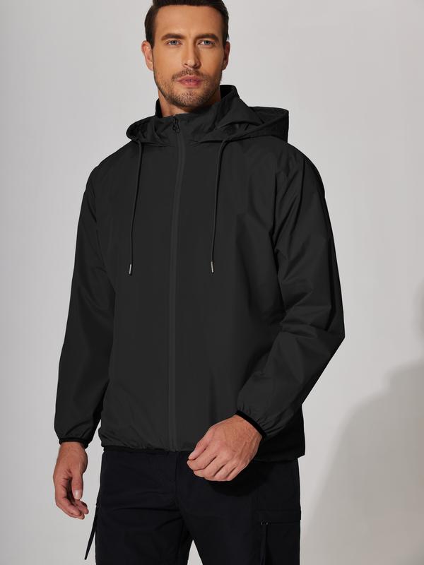 ·【Hidden Full Zip & Drawstring Hood】Men packable rain jacket feature elastic cuffs prevent the rain drops to the cuffs. Adjustable drawstring hood to prevent from being wet. Hidden Full-length zipper with water resistance and elastic hem blocks wind entry for warmth in rainy day or winter.