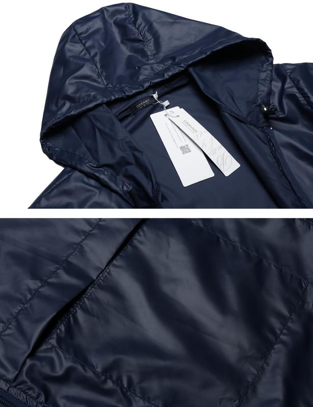 It's a nice jacket fits great but I thought I ordered the color black but I'm still happy with the product itself. It is light & roomy for my clothes underneath. Perfect for wind & rain. carry pouch can be placed in the pockets. Cute...thick drawstrings on hood & bottom.