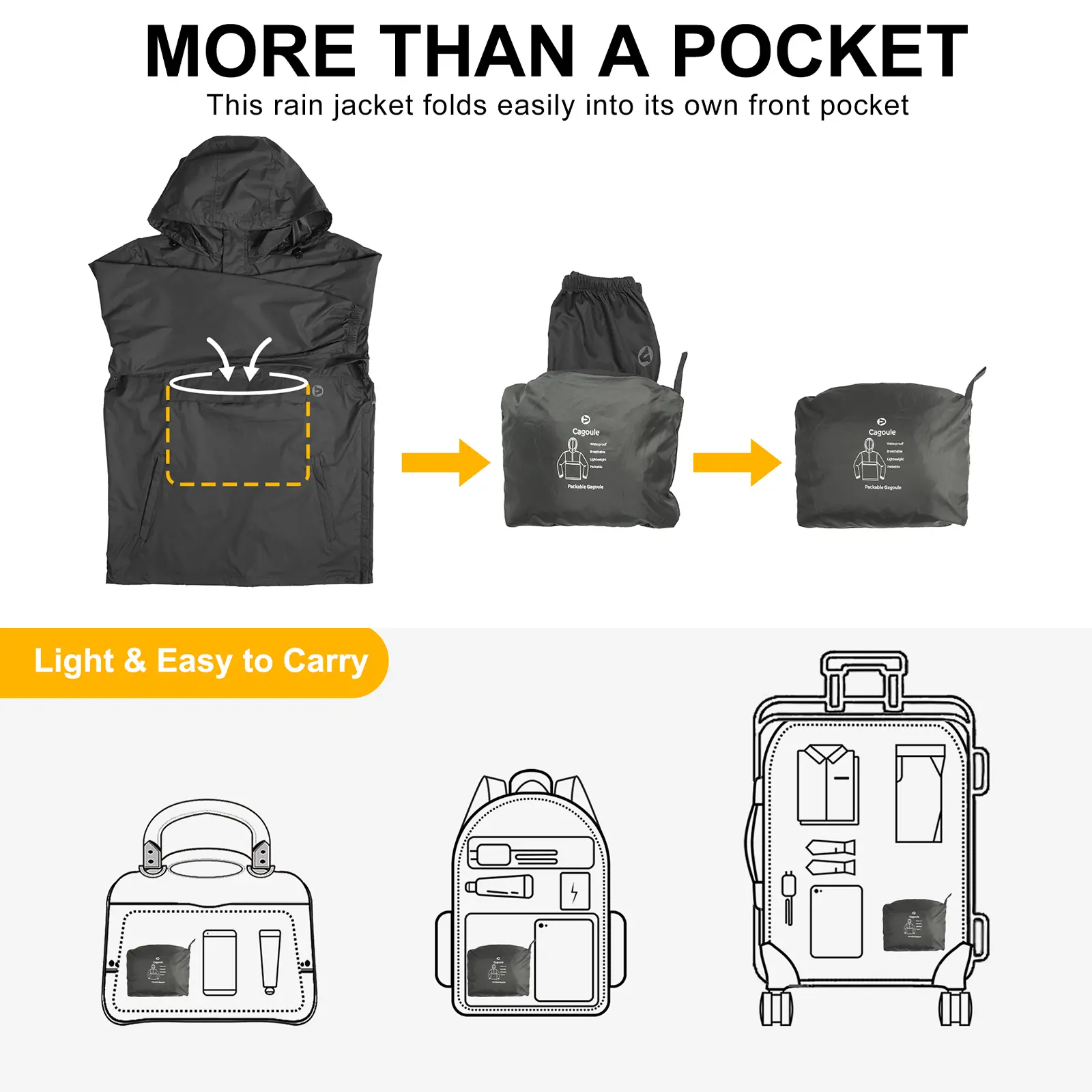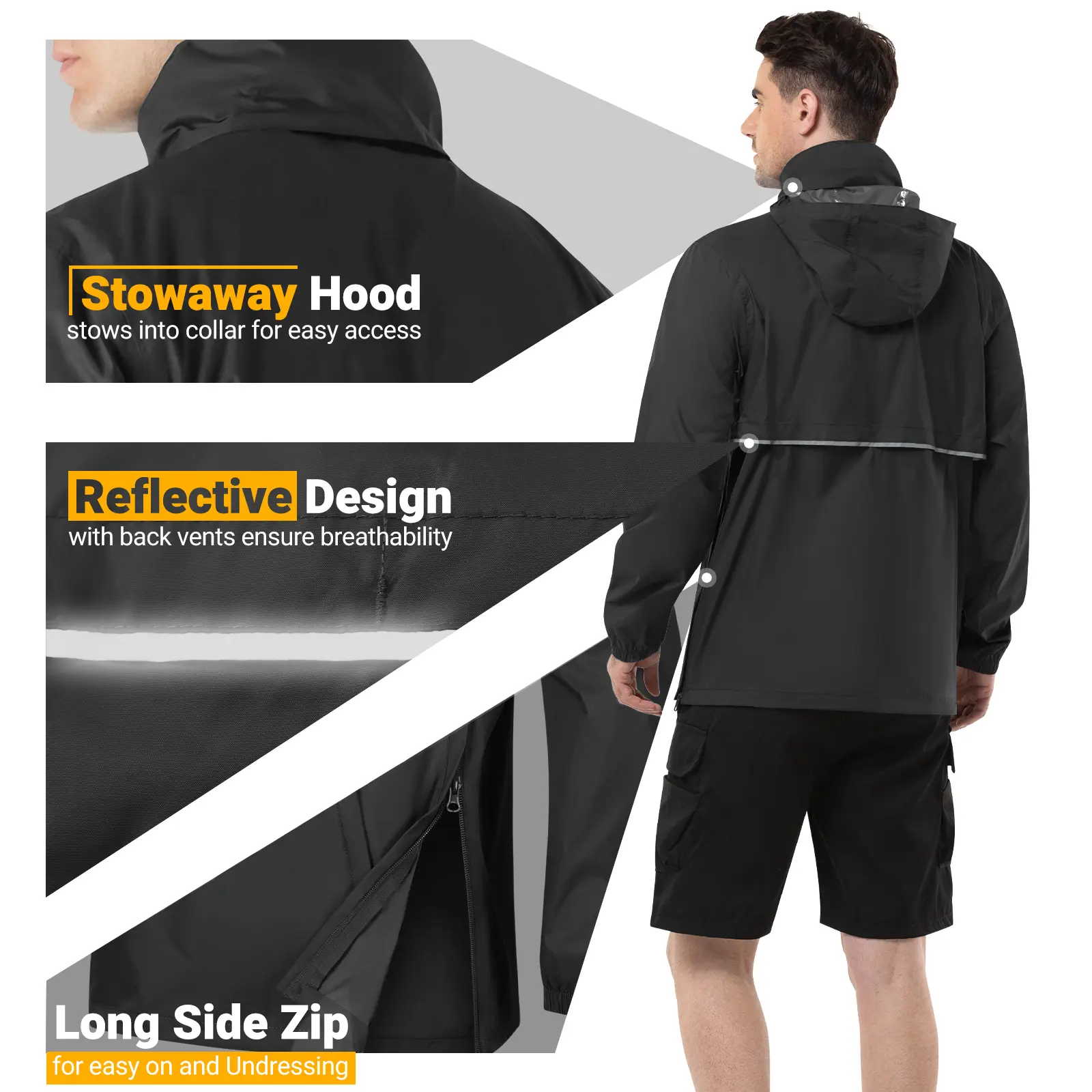 ·LIGHTWEIGHT & PACKABLE: The lightweight pullover rain jacket mens folds easily into its own front pocket. Convenient and compact to minimize space usage. You can always carry a perfect raincoat with you when the weather is unpredictable.