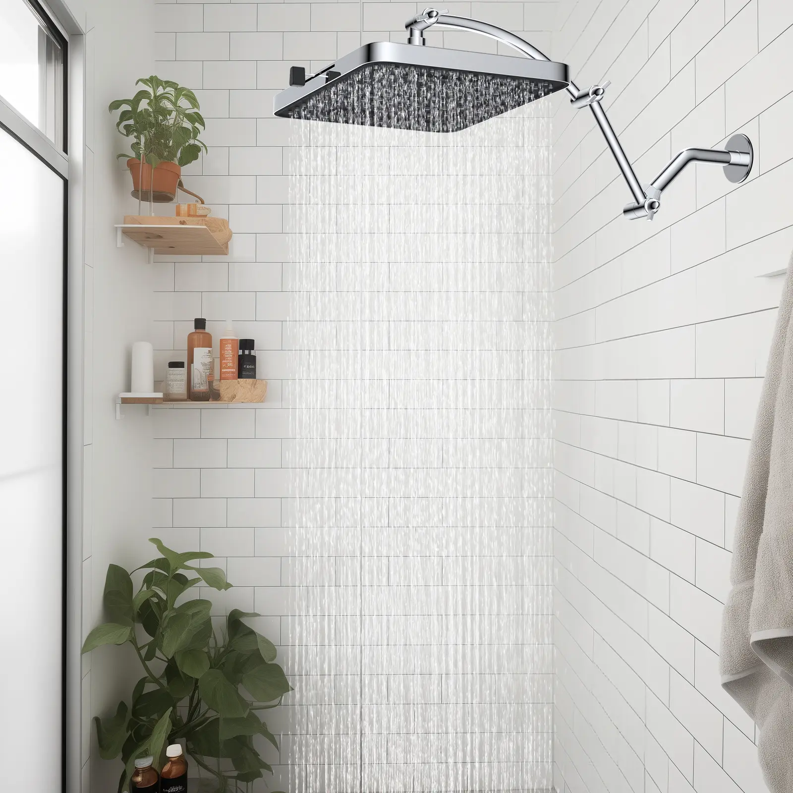 ·Adjustable 16'' Shower Extension Arm: The 16-inch arc-shaped shower head extension arm features an adjustable height and angle, adding a touch of elegance to your bathroom while enhancing its load-bearing capacity. This innovative design ensures the shower head remains vertical and at a great height, preventing it from hitting the shower arm extender. You can easily adjust the extension arm to achieve the desired shower position, providing a comfortable and enjoyable bathing experience