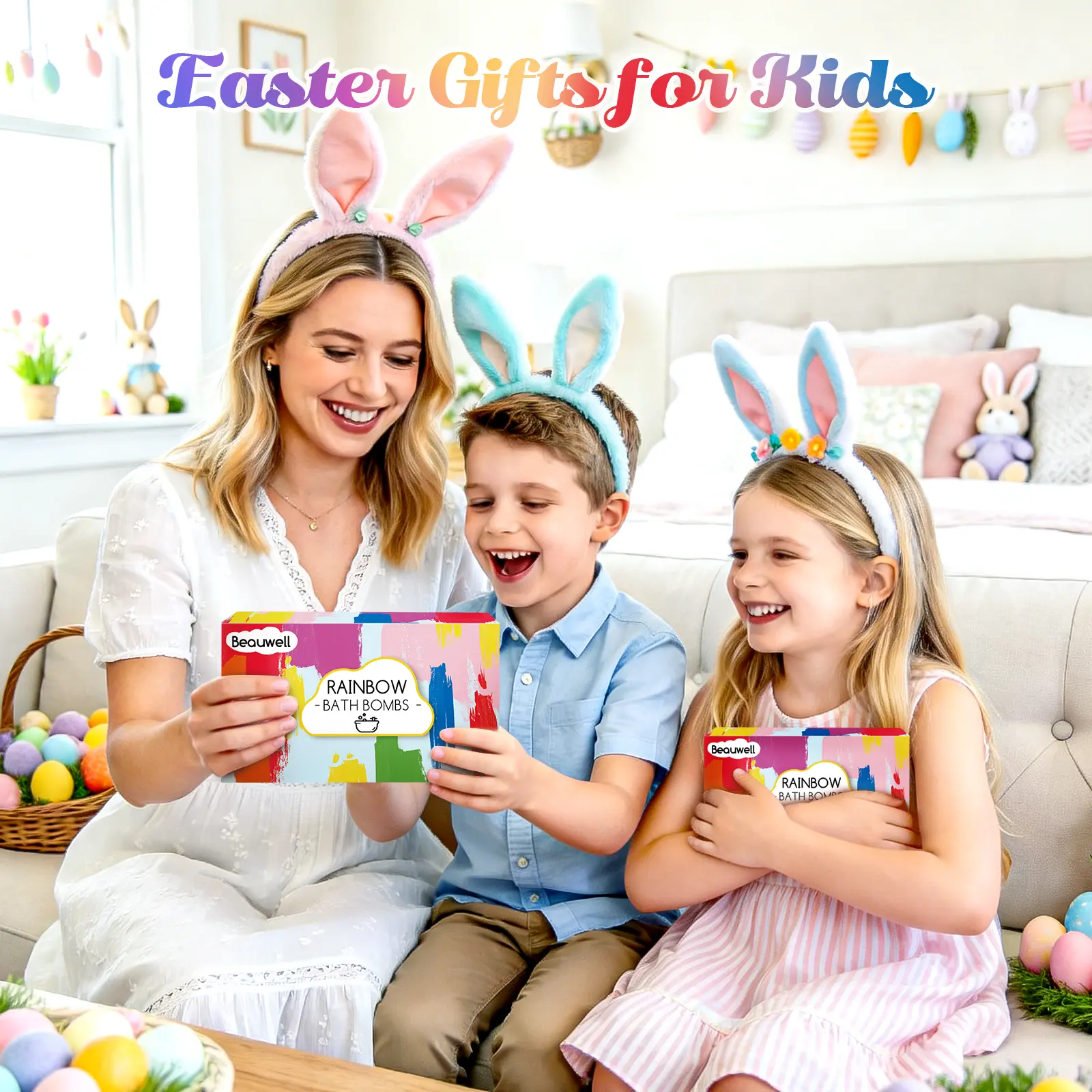 ·Fantasy Rainbows - A fantasy world full of rainbows created by Beauwell rainbow bath bombs for kids, rich bubbles plus brilliant rainbows and fizzing, bath bombs keep marching on rainbow jets and baths come alive! Improve parent-child relationship! Also suitable as ideal Easter basket stuffers for families and lovers.