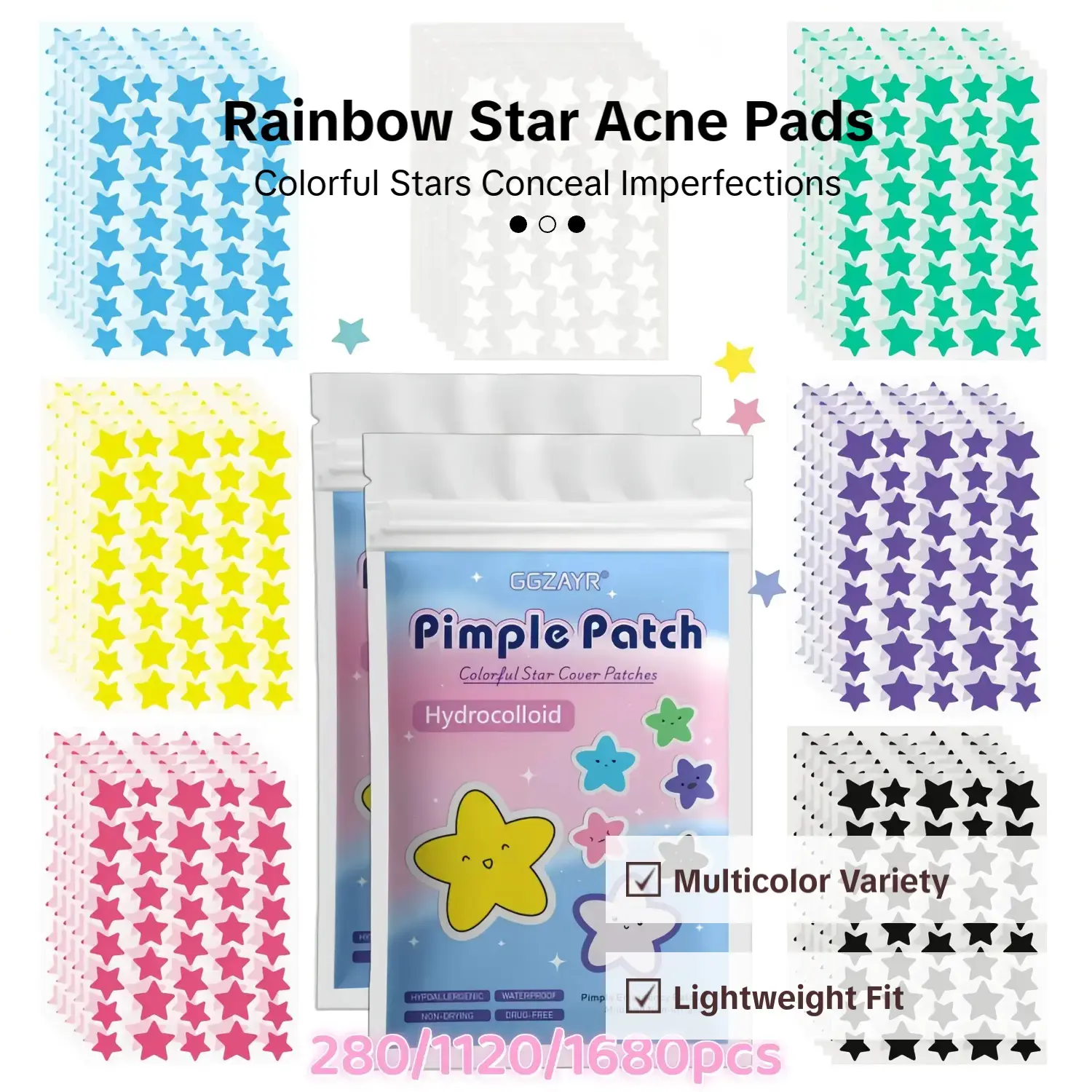 【Multicolor Variety】: Includes multiple colors of star-shaped patches, adding fun and versatility to your facial spot coverage.
