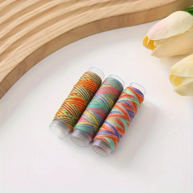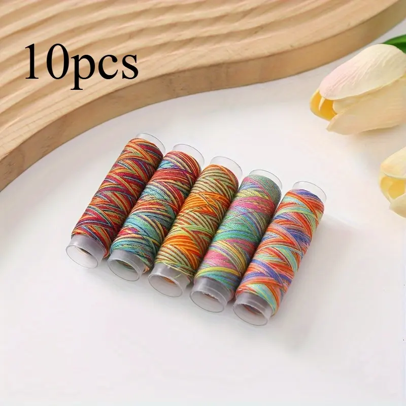 10pcs Rainbow Variegated Polyester Embroidery Sewing Thread - 5pcs, 75 Yards Per Spool, Machine Sewing and Hand Stitching