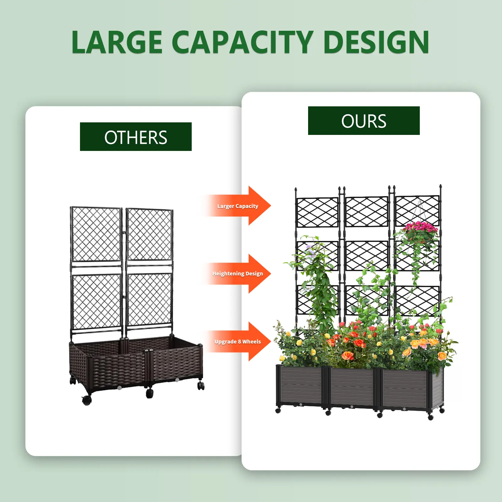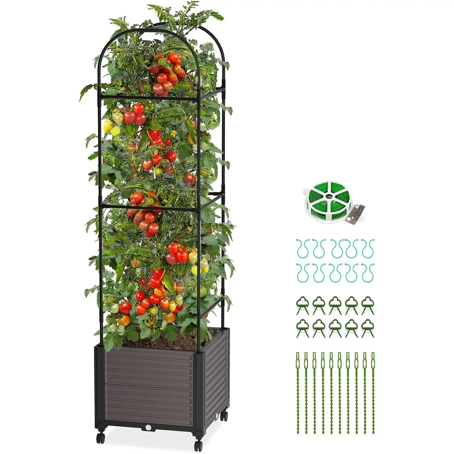 ·【SELF-WATERING SYSTEM】Tomato planter with trellis has a reservoir at the bottom, which keeps the soil continuously moist in the hot summer, without daily watering and less maintenance.The Self-watering reservoir irrigates planter for several days. Each side of the planter has a reservoir plug for draining or retaining excess water easily, and keep your plants breathe well.