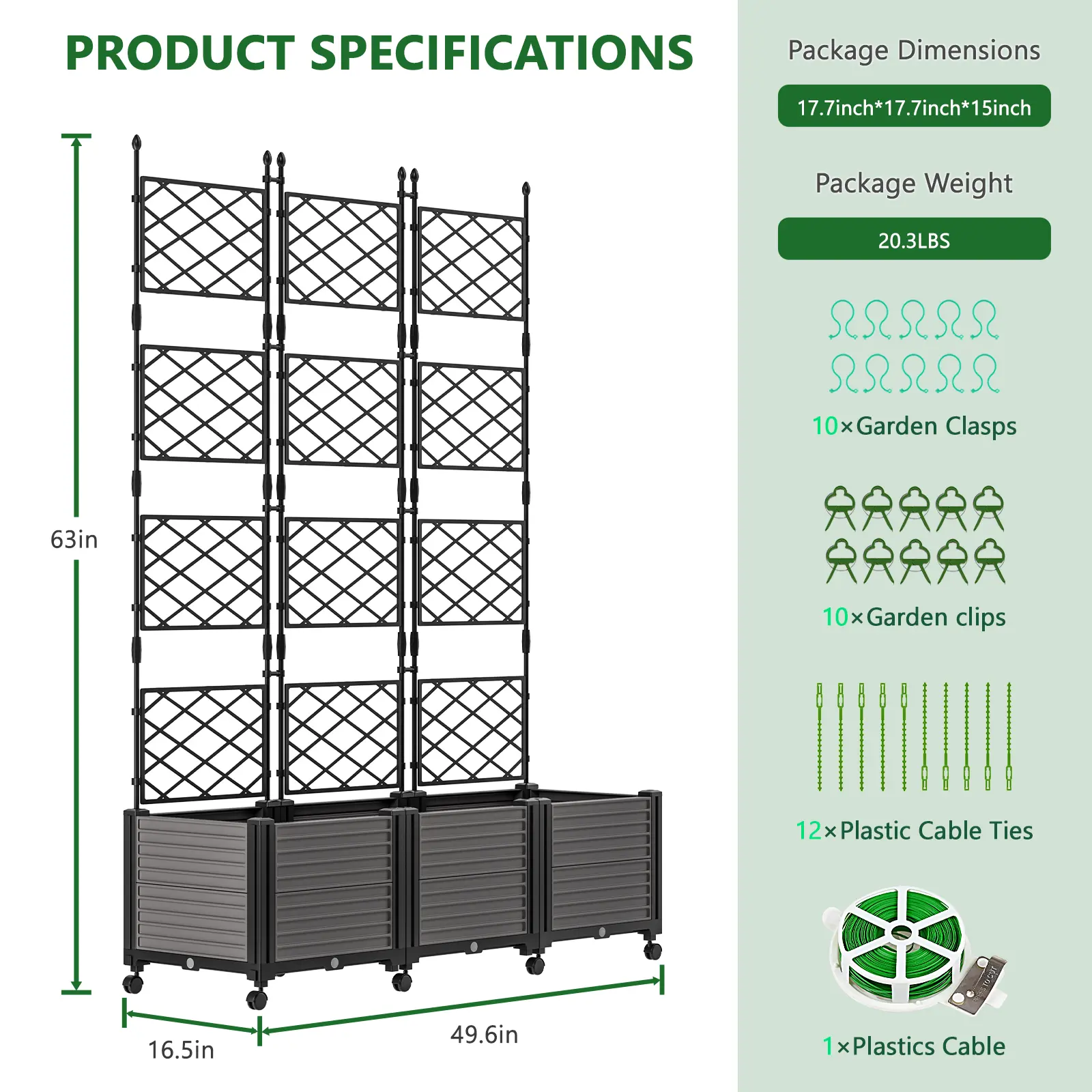 ·【STRONG & STURDY】Vegetable trellis frame is made of alloy steel wire with powder coating and the box is made of sturdy high-quality plastic as well, without any smell, that is anti-corrosion, sunscreen, waterproof colorfast and not easy to break.