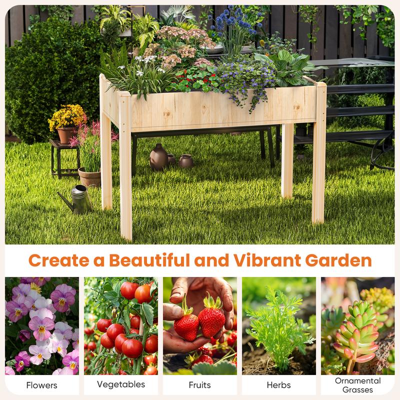 5. Raised Garden Bed with Legs, 48x24x30in Wood Elevated Planter Box for Herbs, Flowers, Vegetables & 300lbs Capacity Outdoor Gardening Planters