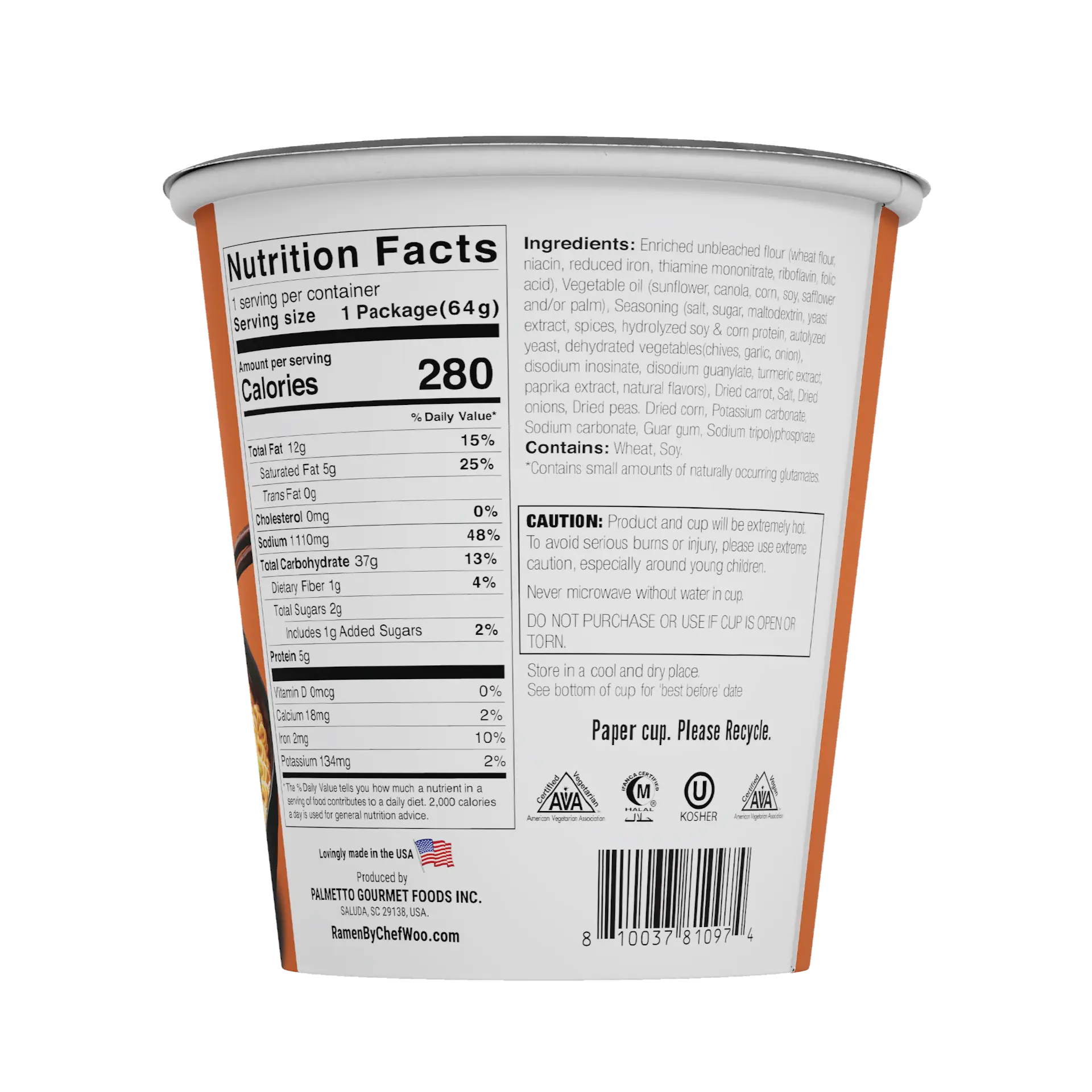 | Ingredients | Ingredients: Enriched unbleached flour (wheat flour,niacin,reduced iron,thiamine mononitrate,riboflavin,folic acid),Vegetable oil (sunflower,canola,corn,soy,safflower and/or palm),Seasoning (salt,sugar,maltodextrin,yeast extract,spices,hydrolyzed soy & corn protein,autolyzed yeast,dehydrated vegetables(chives,garlic,onion),disodium inosinate,disodium guanylate,turmeric extract,paprika extract,natural flavors),Dried carrot,Salt,Dried onions,Dried peas. Dried corn,Potassium carbonate,Sodium carbonate,Guar gum,Sodium tripolyphosphate. Contains: Wheat,Soy. |
