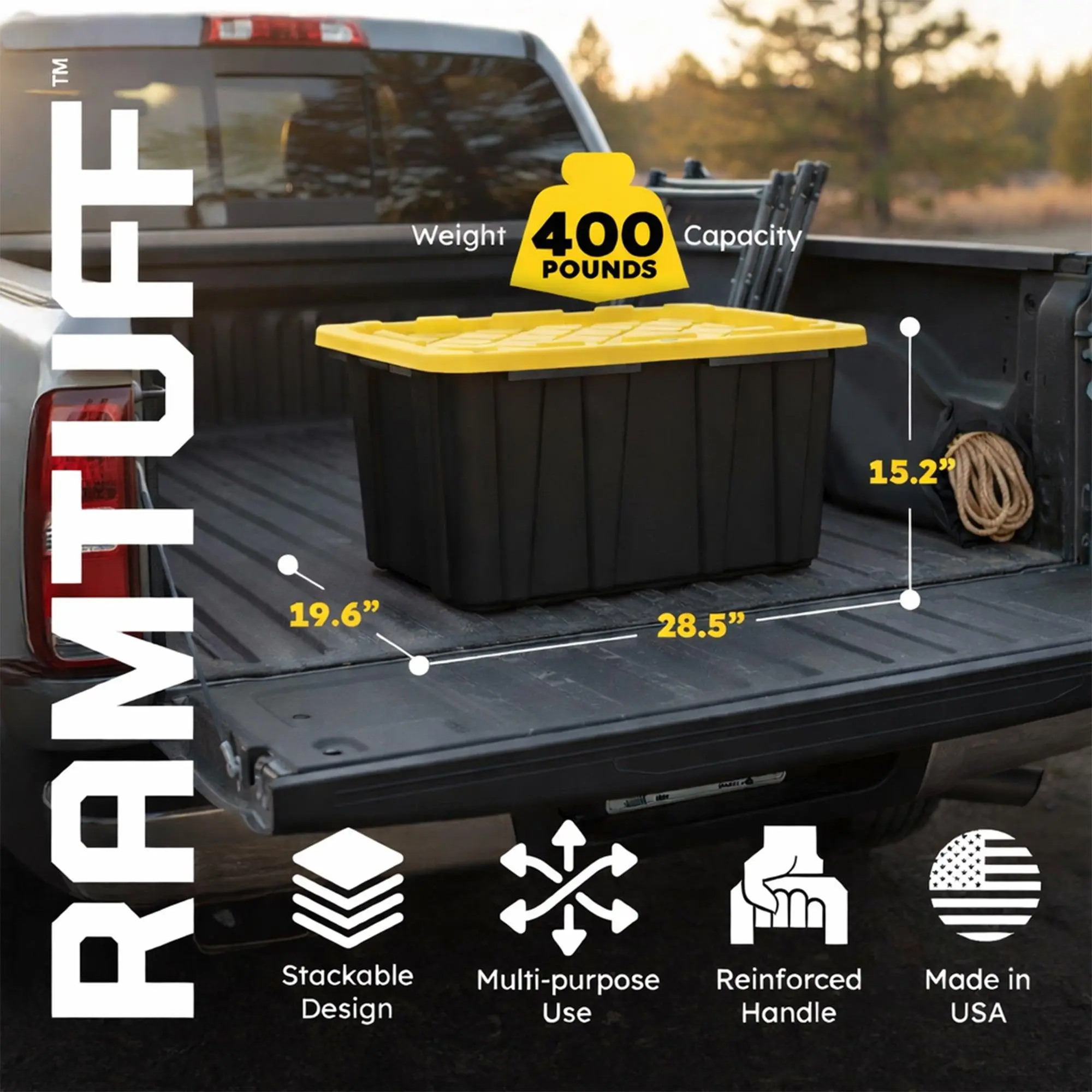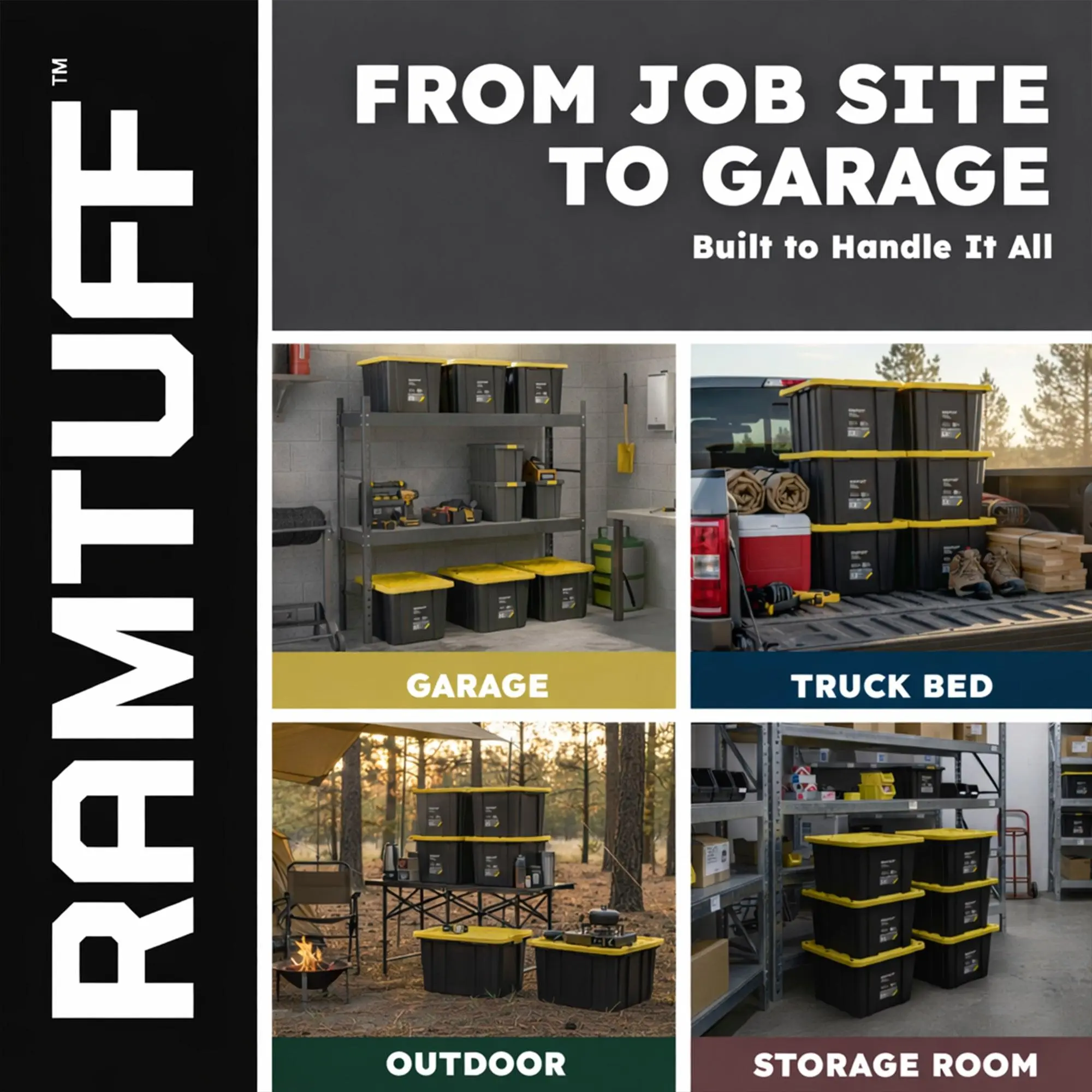 Take control of clutter with this complete storage and organization solution featuring a 6 pack of Ramtuff Heavy Duty Stackable Storage Containers paired with a 8 pack of ORGANIZE-IT! 6-Slot Tote Dividers. Designed for durability, versatility, and efficiency, this combination transforms ordinary storage into a highly organized system for home, garage, workshop, office, or outdoor use.The Ramtuff 27-gallon storage containers provide generous capacity for tools, camping gear, sporting equipment, seasonal décor, clothing, documents, and more. Built for long-term use, each tote features a weather-resistant snap-tight lid that keeps contents protected while preventing the lid from popping off during transport. A recessed lid design allows containers to stack securely, saving valuable floor space, while the nesting design enables compact storage when not in use. Ergonomic handles make carrying heavy loads more comfortable, and integrated tie-down strap slots plus lock or zip-tie holes add security during transport or storage.To maximize organization inside each tote, the ORGANIZE-IT! 6-slot divider fits 27-gallon containers and converts open storage into neatly separated compartments. Made from durable, high-quality plastic, the divider is strong enough to handle heavy or bulky items without bending or breaking. Its tool-free, easy installation allows quick setup, while the modular design lets you adapt the layout as your storage needs change.Together, these rugged totes and dividers deliver a reliable, space-saving solution that keeps everything visible, accessible, and protected—perfect for anyone looking to organize with confidence and efficiency.