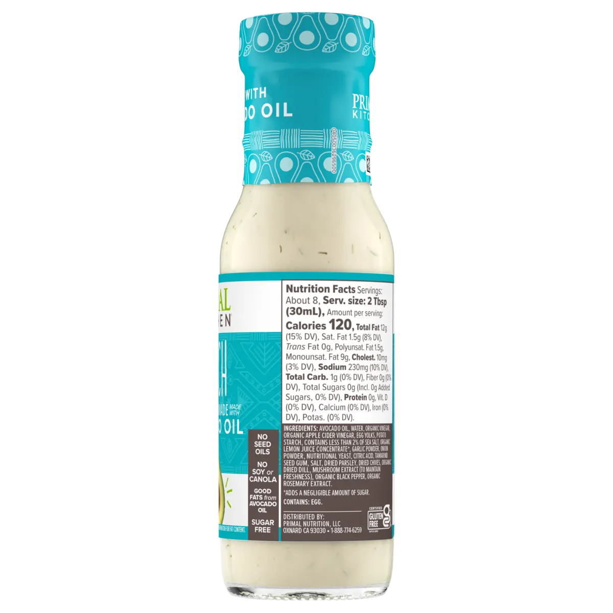 Elevate salads, skillet meals, and more with the #1 Dressing brand in Natural Grocery!* Primal Kitchen® No-Dairy Ranch Dressing is made from real ingredients like cage-free egg yolks and good fats from avocado oil for a creamy, iconic taste.