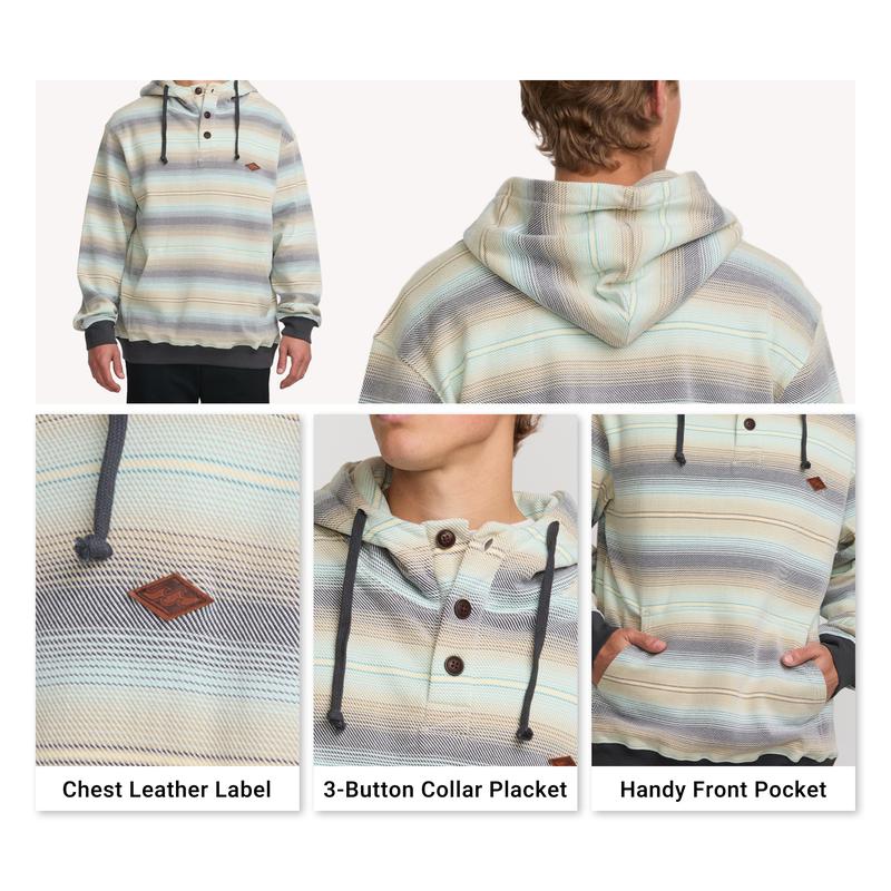 BILLABONG Rancho Pullover Sweatshirt Fleece Menswear Mid-weight 3-Button Collar Casual Tops for Everyday