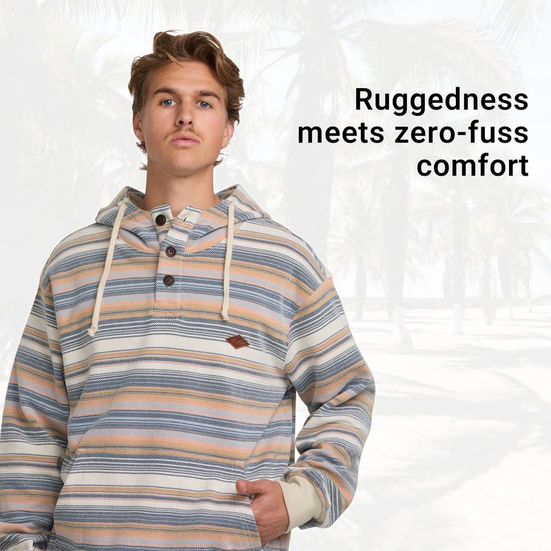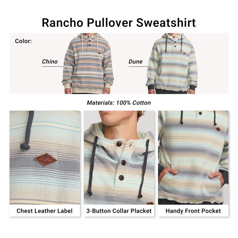 5. BILLABONG Rancho Pullover Sweatshirt Fleece Menswear Mid-weight 3-Button Collar Casual Tops for Everyday