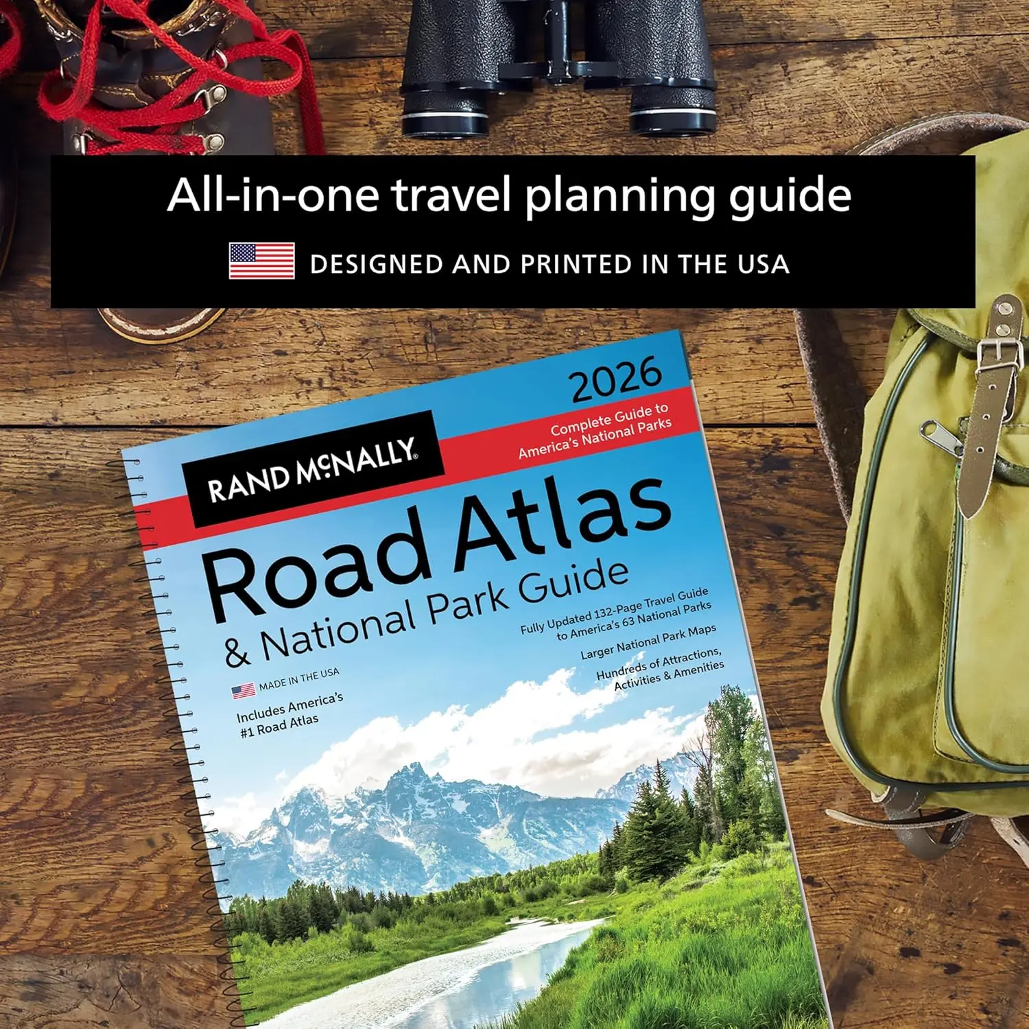 This all-in-one travel planning guide, designed and printed in the USA, is the only atlas highlighting the extraordinary beauty of every one of America’s 63 national parks while providing travelers with the trusted routing and points of interest tools they’ve relied on for generations. This new edition features a complete 2026 Rand McNally Road Atlas featuring the most up-to-date maps, more detailed city inset maps, and more travel planning information than the competitors, which is why it’s been the essential, trusted tool for road travelers for more than 120 years.