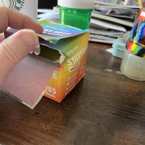I love it but i did not expect the top of the note to be sparkly making it a rough surface when writting and the entire sheet is sticky. It doesn't seem to be damaging at the moment.