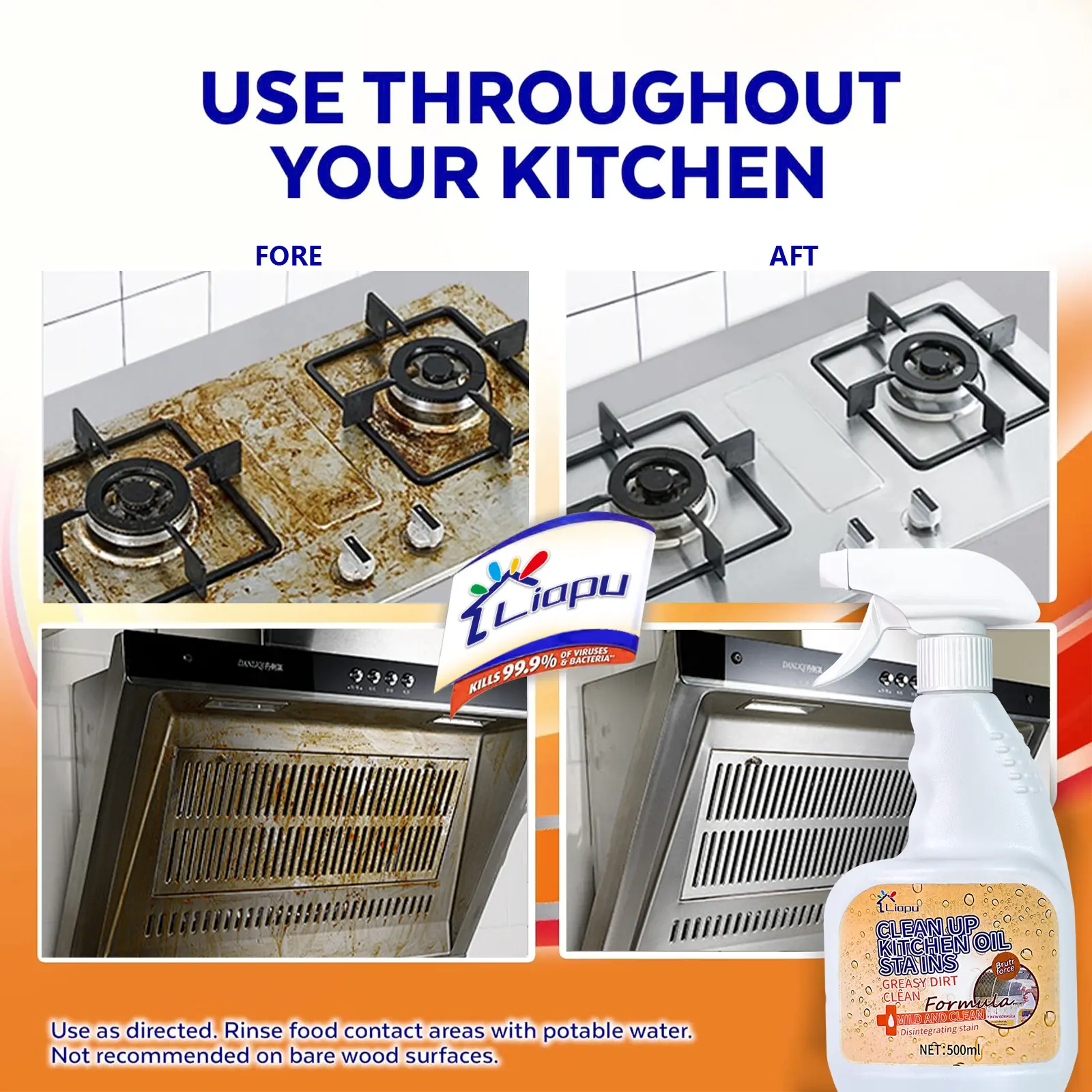 5. 【Liapu】Range hood cleaning to removeheavy oll stains in the kitchen lRemove all stubborn oil stains!