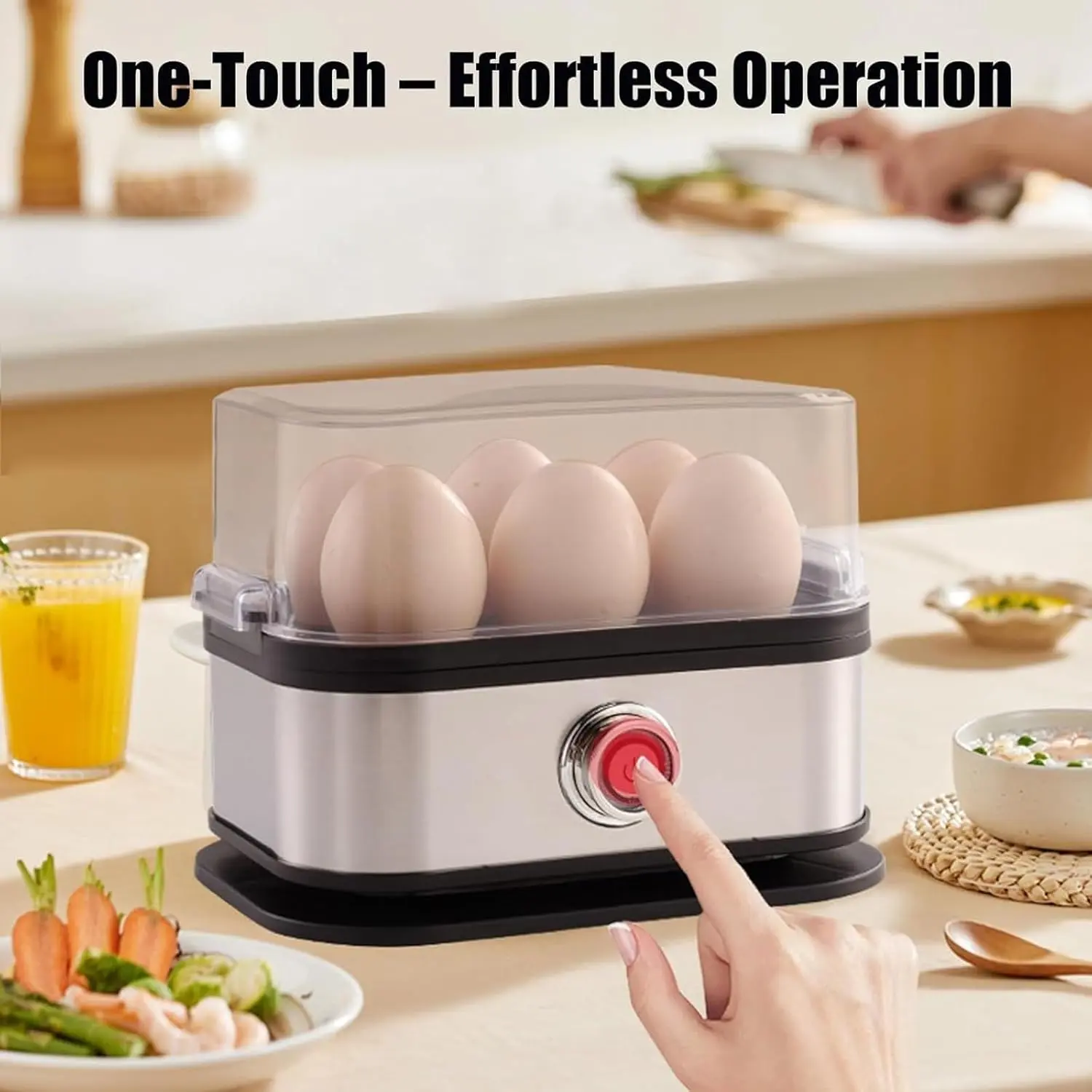 ·Six-Egg Capacity: This smart egg cooker cooks six eggs at a time, allowing you to cook multiple eggs at once. Our egg cooker is more efficient than traditional stovetop egg cooking, making it ideal for families, small parties, or bulk cooking.
