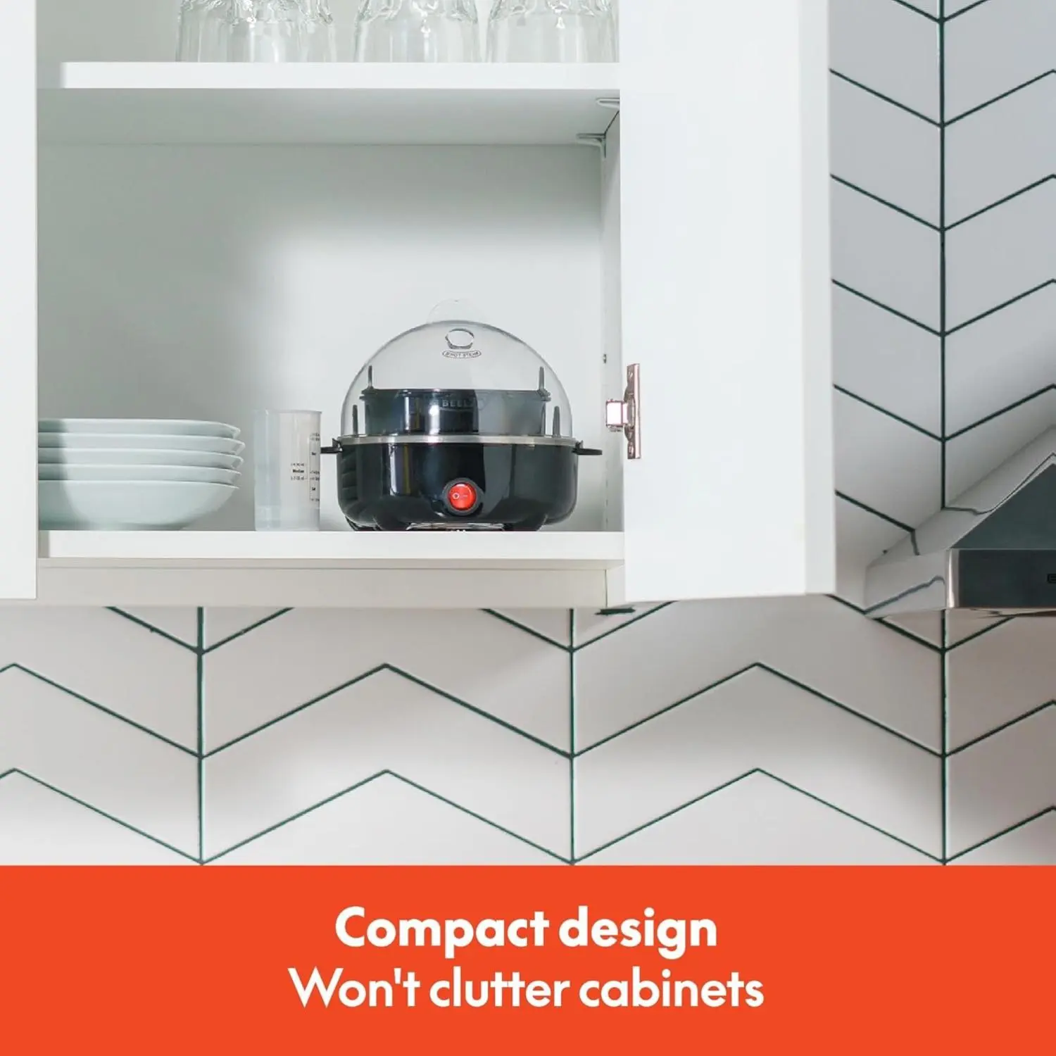 ·ACCESSORIES INCLUDED: Includes PFOA-free Non-Stick boiling trays and poaching tray, and measuring cup with piercing pin to prevent shells from cracking. For added convenience, measuring cup clearly indicates how much water to add to cook eggs to your preference for perfect eggs every time!