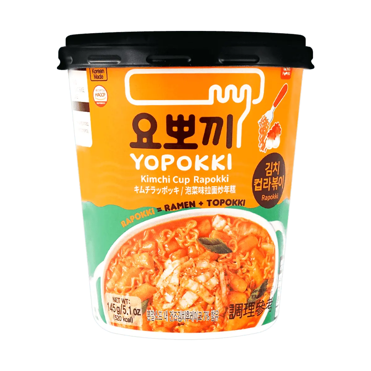 YOPOKKI Korean Instant Rapokki Rice cake with Ramen Spicy Kimchi Flavor 145g
