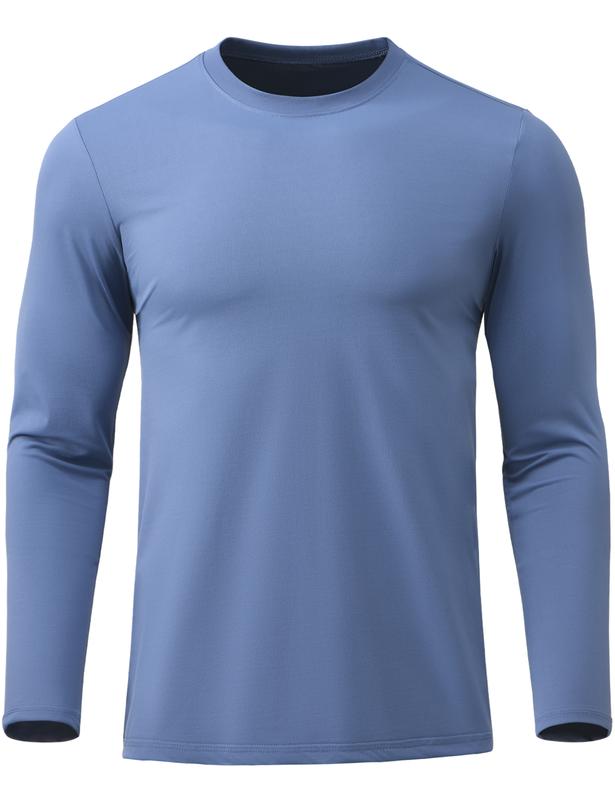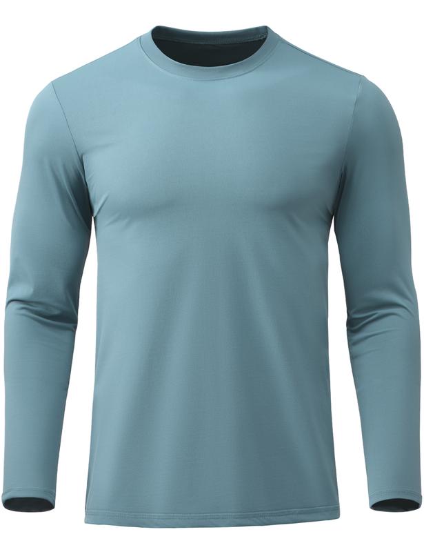 UPF 50+ Sun Protection: Designed to be your ultimate outdoor companion, the men’s long-sleeve sun protection T-shirt provides UPF 50+ protection against harmful UV rays. It blocks the majority of ultraviolet rays, significantly reducing the risk of sunburn and skin damage. Whether you're on a beach vacation, hiking in the mountains, or enjoying everyday outdoor activities, the crew-neck workout T-shirt adds a vital layer of protection for your skin.