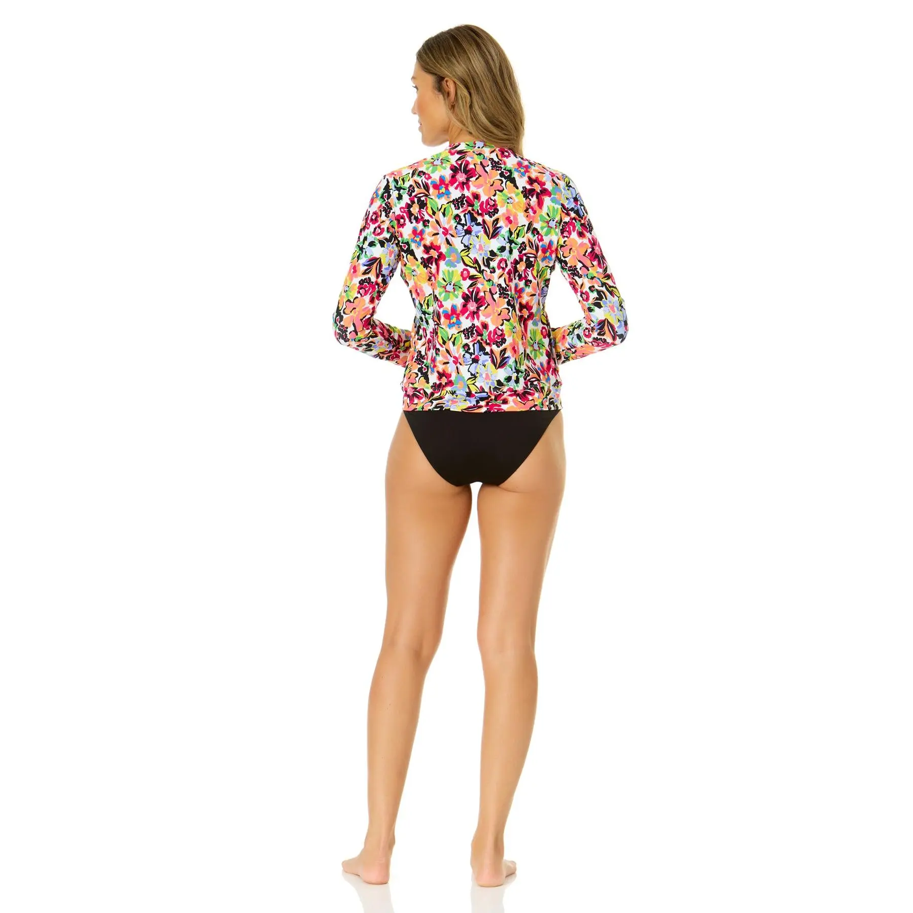 Women's Sun Blossom Long Sleeve Zip Front Rash Guard Top