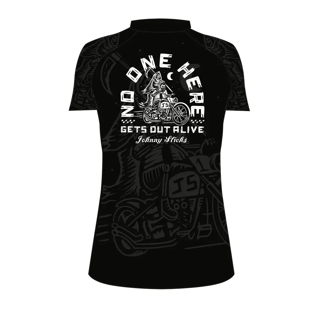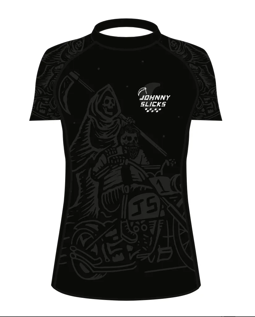 This Rashguard has a wicked cool design for those who like to live recklessly. Our rashguards are super comfortable and true-to-size. American Made, Designed and Printed in the USA by our friends at Few Will Hunt !