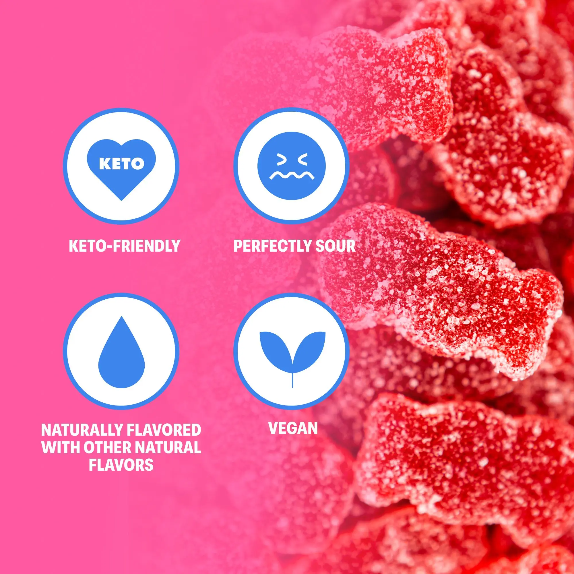 These are INCREDIBLE! I was a little skeptical, but I have a huge sweet tooth and decided to try them out since I’m trying to lower my sugar intake. The texture is amazing and the flavor reminds me so much of the red sour patch kid. These are definitely going to be my new go to candy!