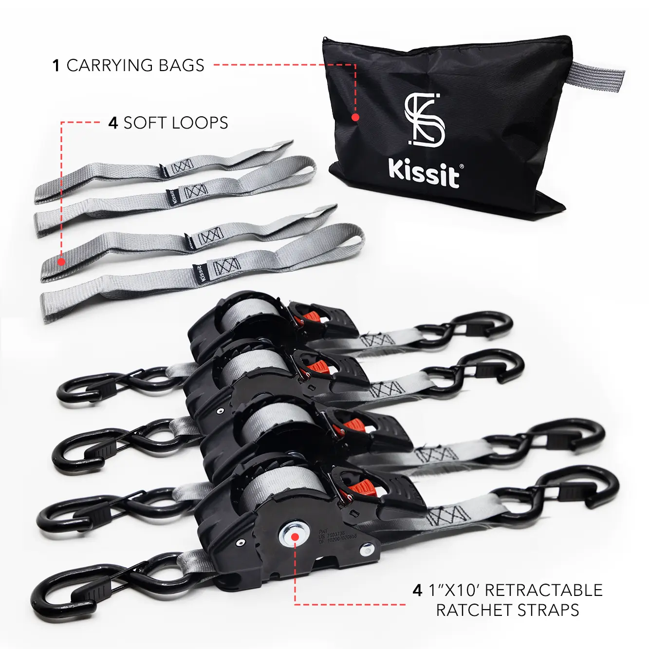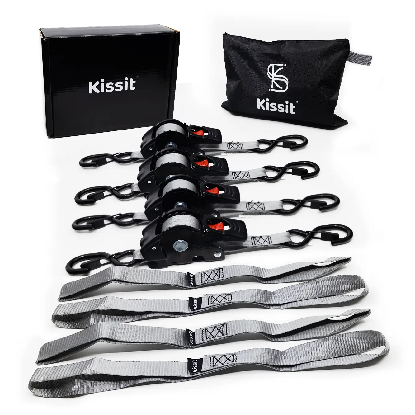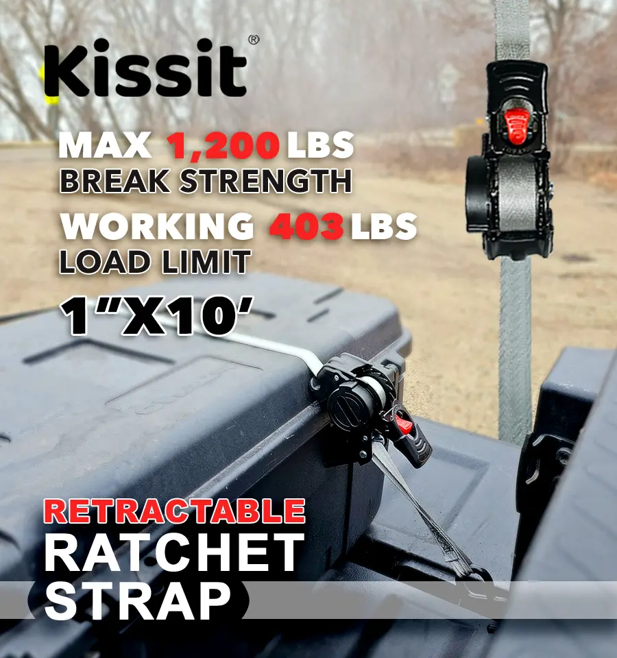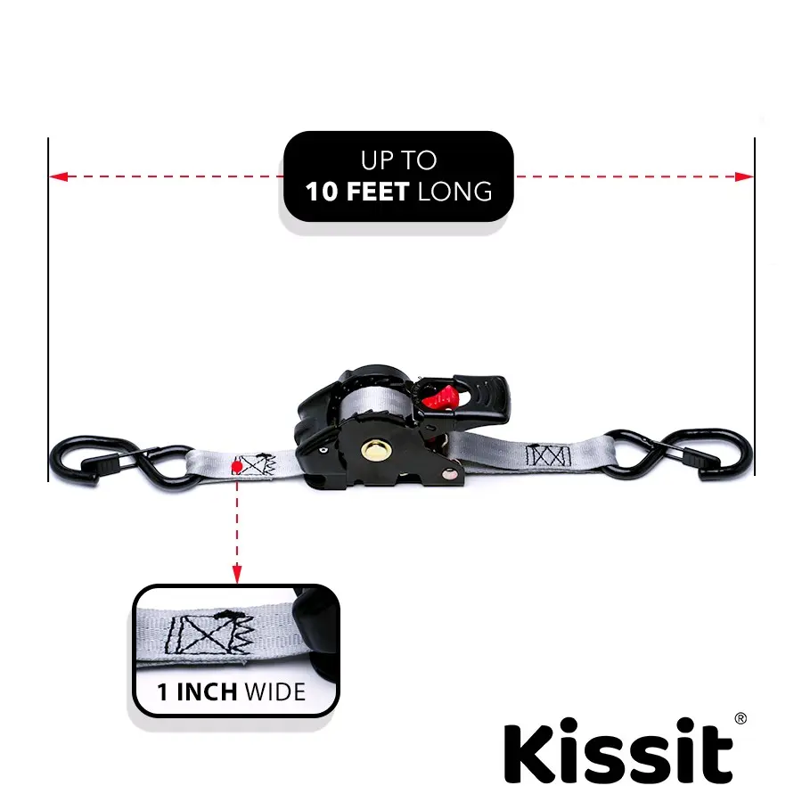 KISSIT RETRACTABLE Ratchet Straps are perfect for securing a variety of items. Use these trailer accessories to transport motorcycles, canoes, kayaks, ATVs, boxes, boats, furniture, lawn equipment, heavy machinery, and more via truck beds, trailers, or roof racks